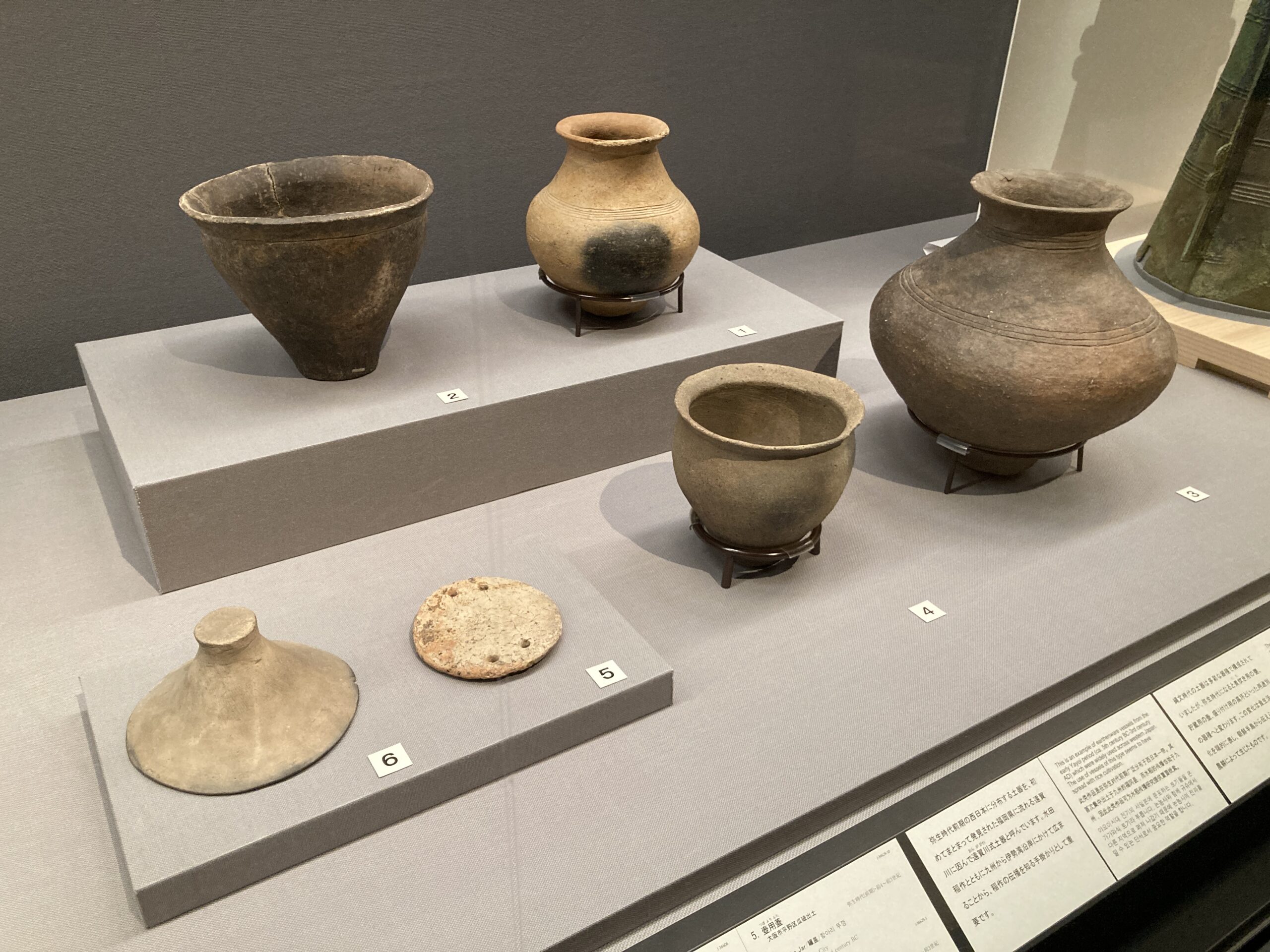 この辺の装飾が多い縄文土器から弥生土器への変化は実用面を重視されるようになったからだろうか?縄文時代の土器はなんかスピリチュアルな感じがするし、少し器に対する考え方の変化があったのかもしれない。