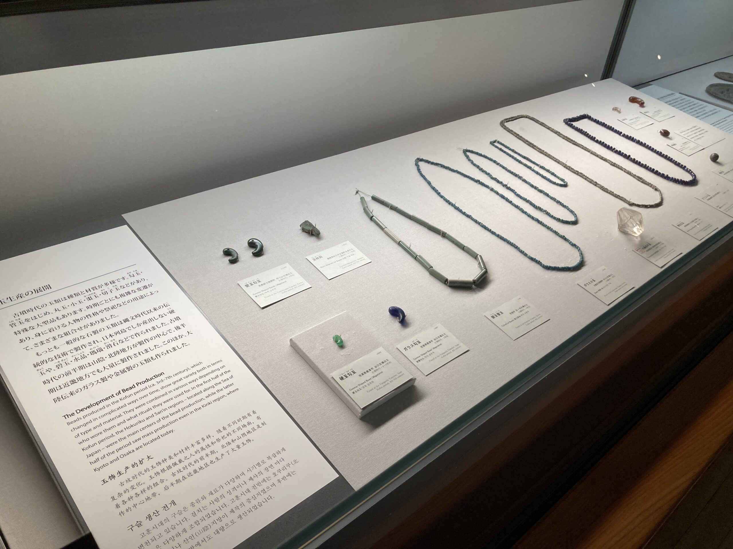 縄文時代には、粘土や石、木や骨、角や貝など、さまざまな素材で装身具や祈りの道具がつくられていましたが、弥生時代になると新たに青銅製の腕輪である銅釧、ガラス製の勾玉や管玉などの首飾りが登場します。