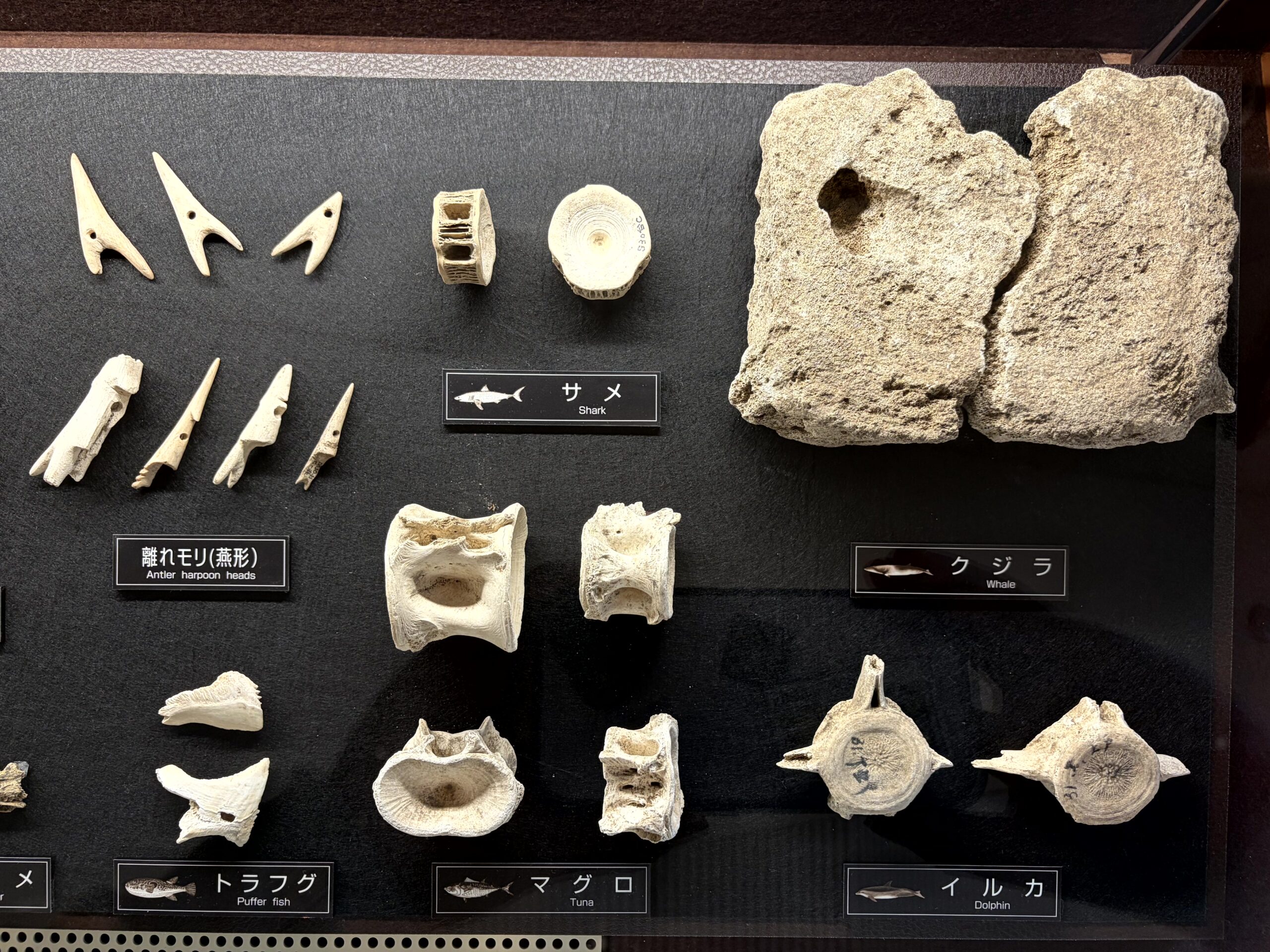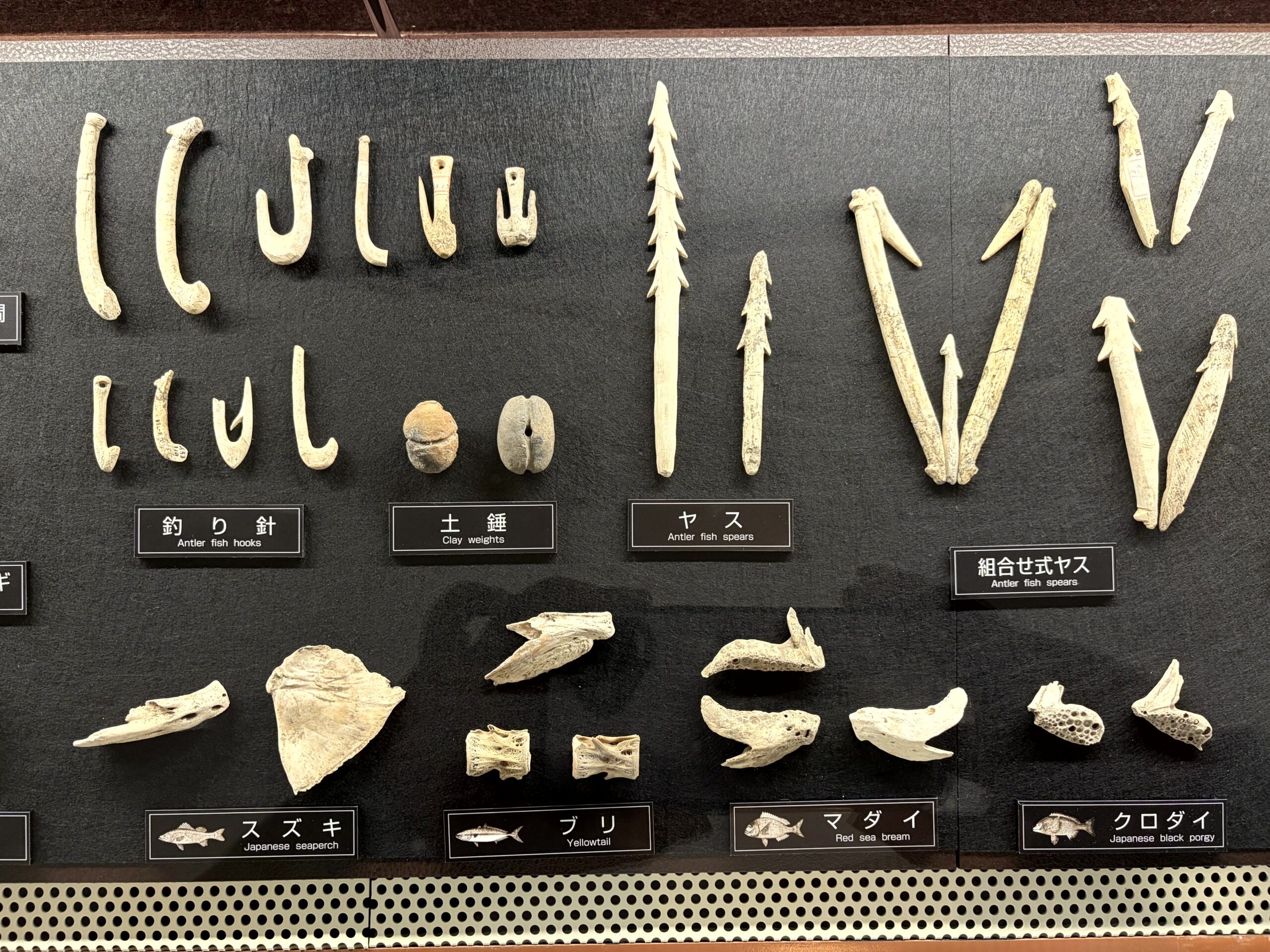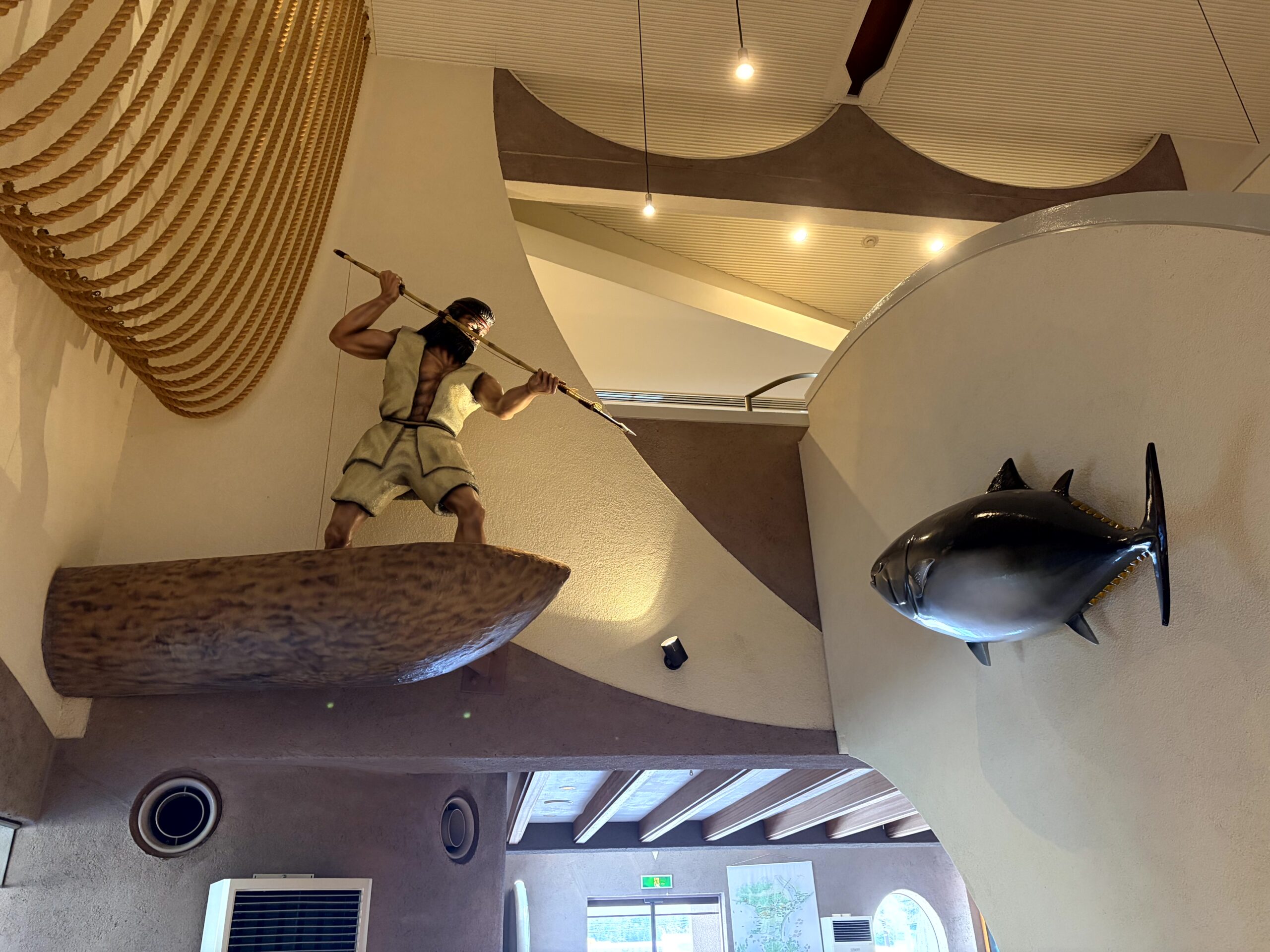 因みに、この時代の銛の先っぽは「回転式離頭銛」という銛先になっていて、獲物に刺さると銛の頭部分(離頭)が本体から外れ、刺さった場所で横(T字型)に回転して、魚の体内にとどまる仕組みになっていたらしい。主にアイヌ文化などの海獣・大型魚類漁で使用された、高度な狩猟具だったんだそうな。