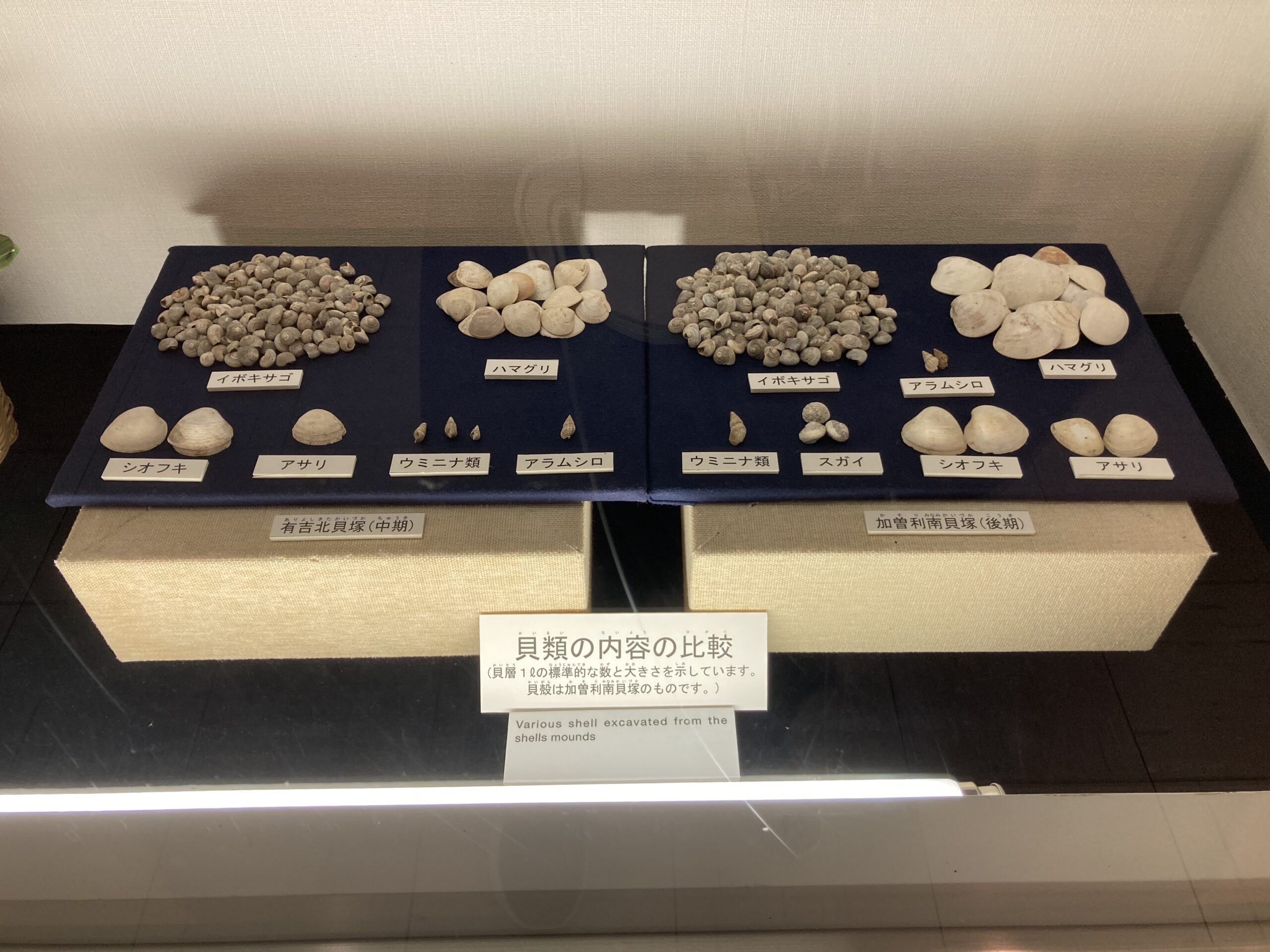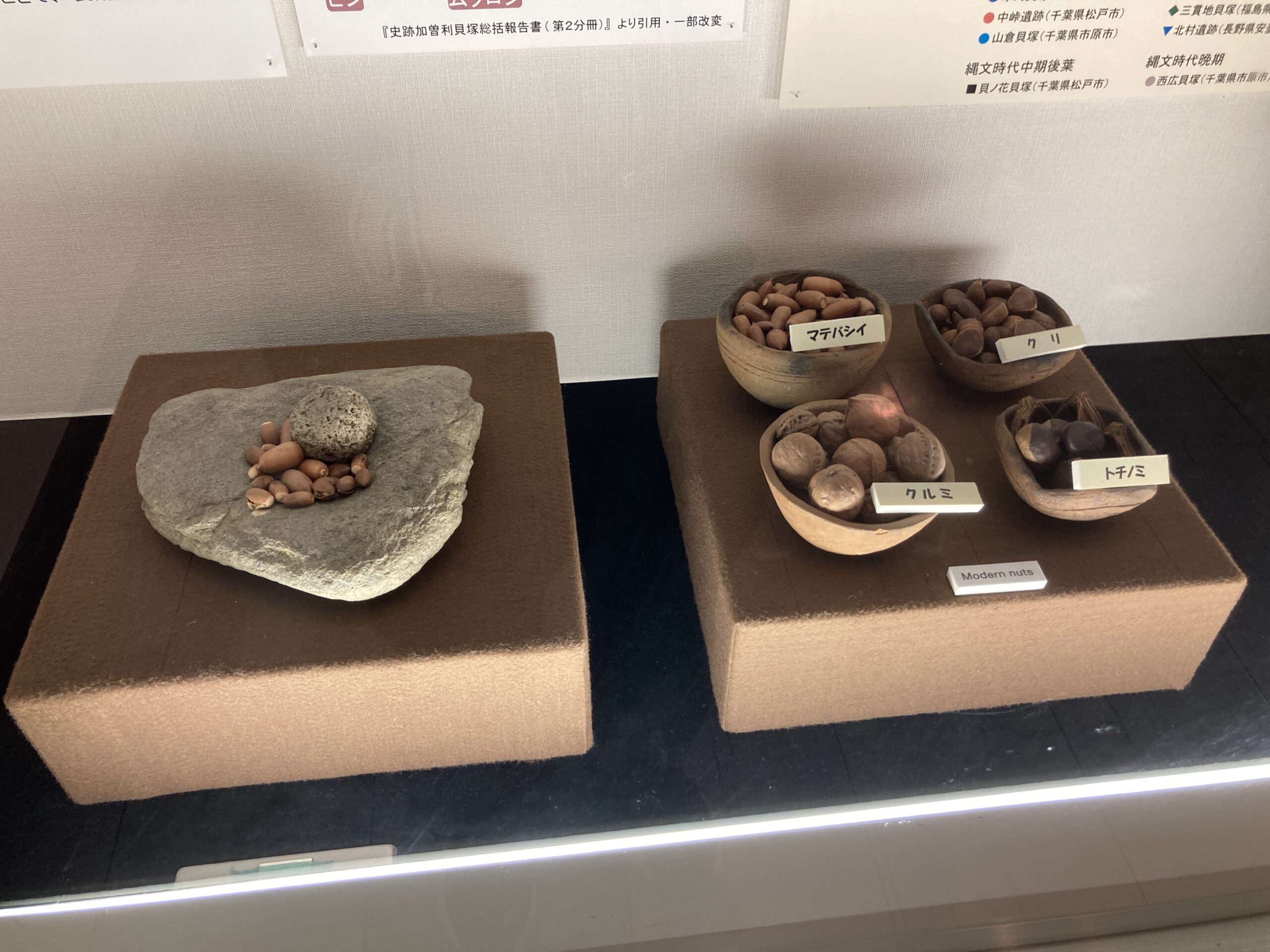 食生活については、シカやイノシシやサルなどで、実際に骨も出土している。因みにアナグマが一番美味しいとの噂。あとは、クリとかトチとか、貝塚の名の通り貝とか、貝類はイボキサゴが圧倒的に多い。