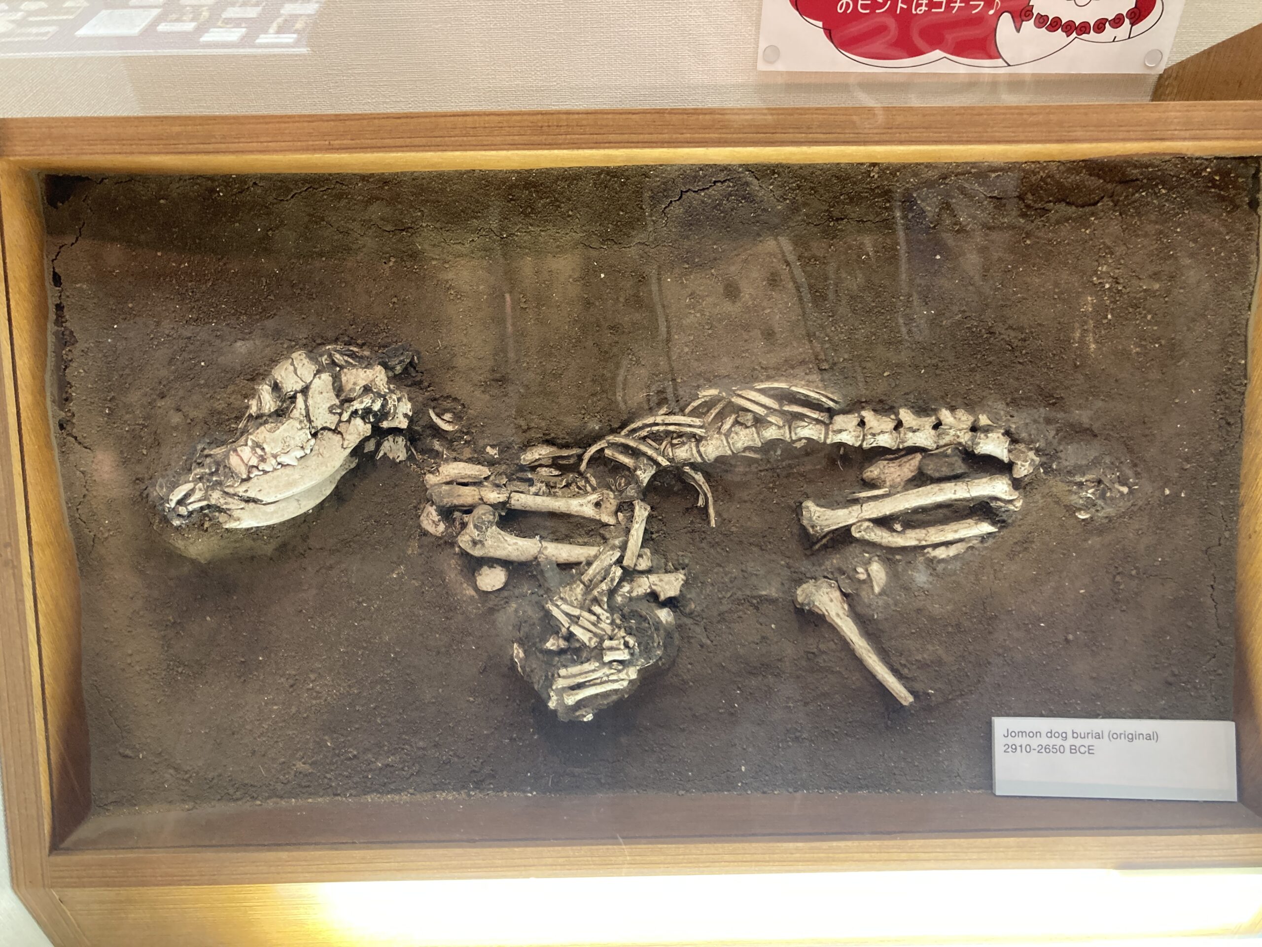 加曾利貝塚からは犬の骨が出土している。先ほどのシカやイノシシなんかは、骨が散乱して発見されているのに対して、犬の骨は丁寧に埋葬されている。なので、食用ではなく「狩りの相棒」として飼われていたということが推測されている。尚、犬のサイズの中型犬が多い、理由は追い込み猟に向いているため。
