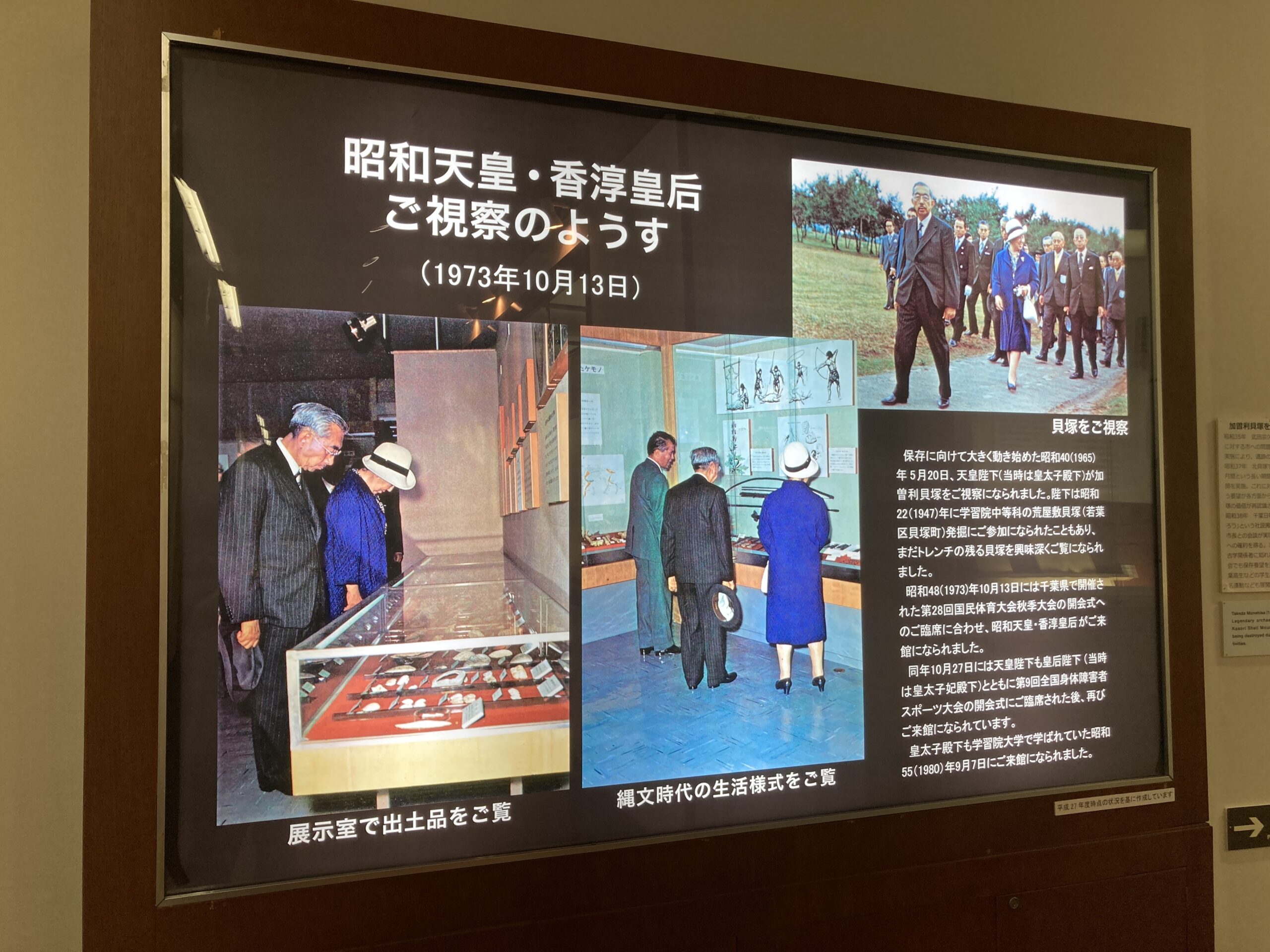 加曾利貝塚の初めての発掘調査以降、昭和天皇の視察とか、遺跡の保存運動とかいろいろあった。その結果、特別史跡として保存されることが決定したが、特別史跡になったことで、やたらと調査できなくもなっている。