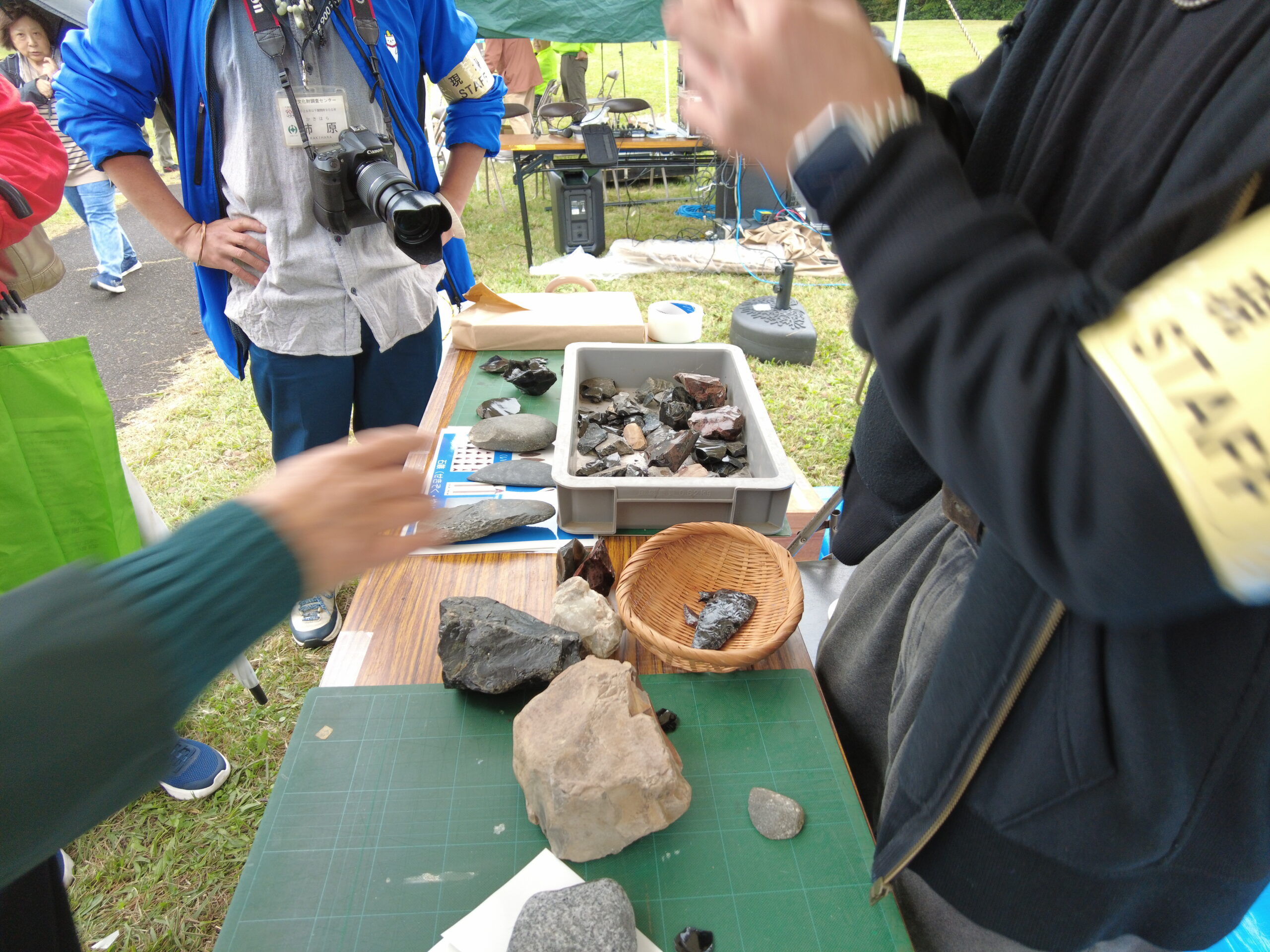 こちらは黒曜石コーナー。少し赤い黒曜石が混じっているんだけど、それは鉄分が多いから赤く見えるんだそうな。確かに持ってみると、黒い黒曜石よりも赤い黒曜石の方が若干重く感じた。