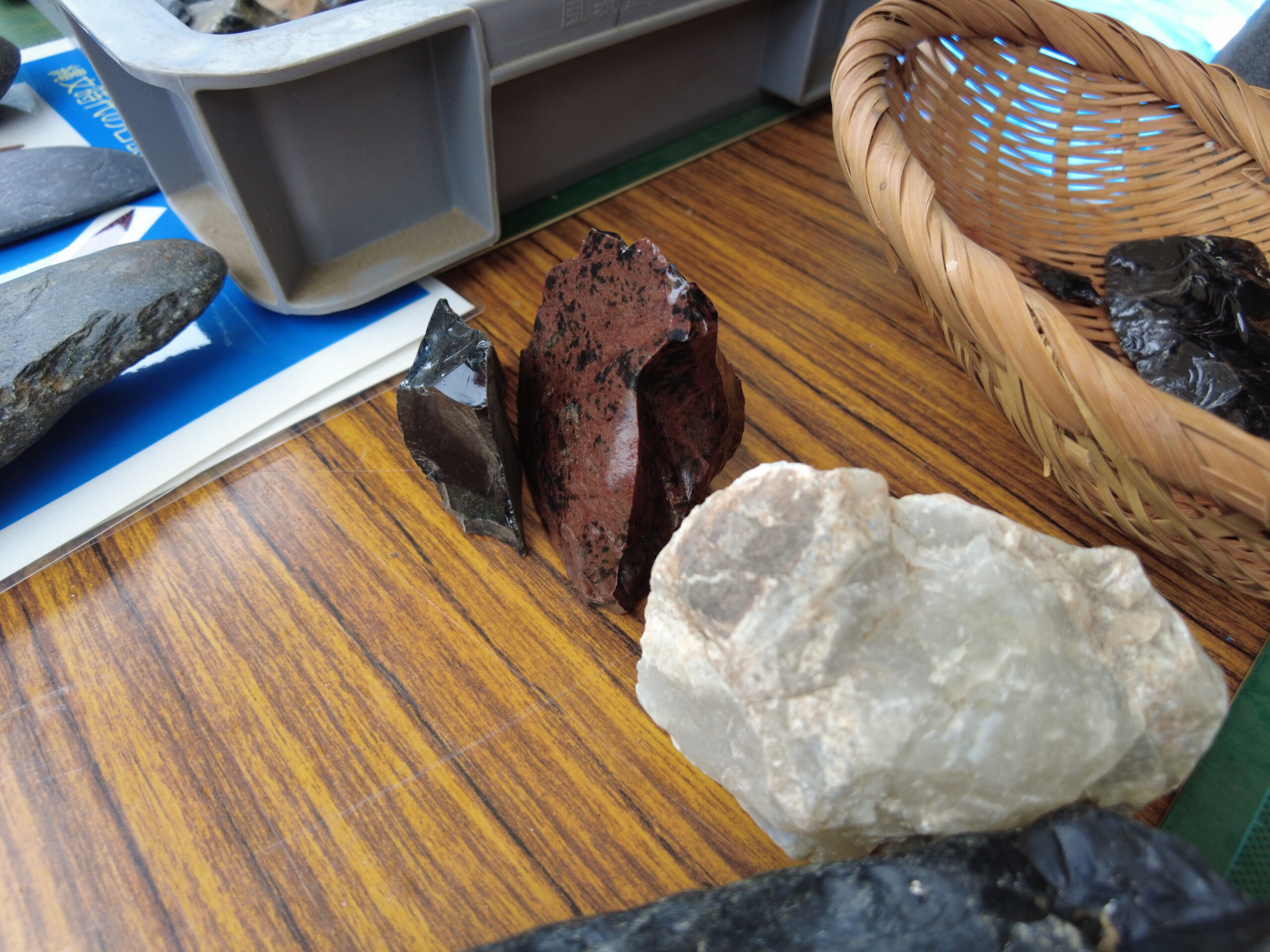 因みに、黒い黒曜石は長野県とかその辺で採れるらしく、赤い黒曜石は北海道とかそっちの方で採れるらしい。発掘してて赤い黒曜石の矢じりとか出てきたら、テンション上がりそうだったけど、多分千葉だと赤い黒曜石は無理かなぁ...