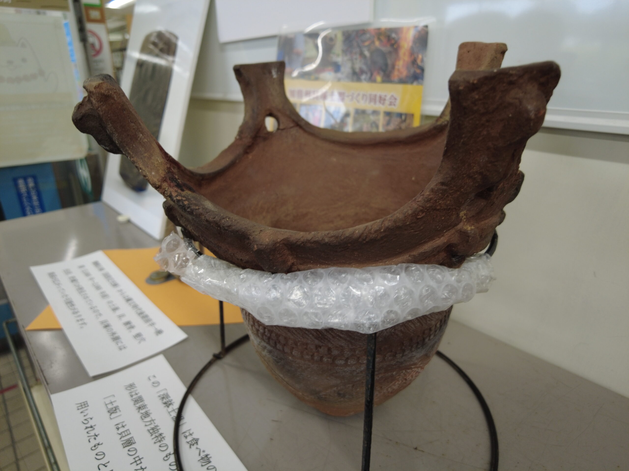 かわいい土版と安行1式型の深鉢。犢橋貝塚辺りの遺物といえば、この2つが代表作なんだそう。