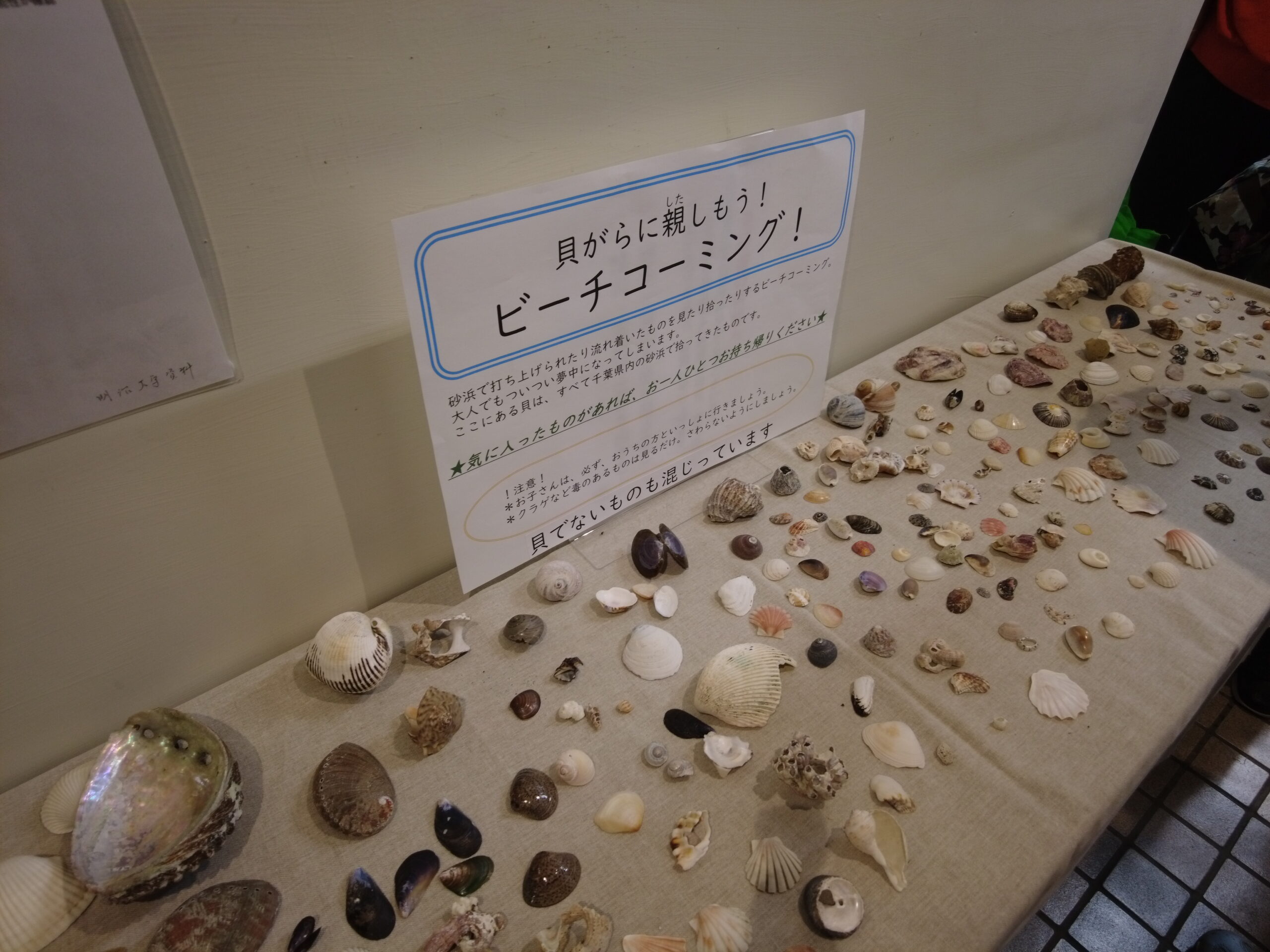 あとは、1人1個ご自由にお取りくださいのビーチコーミングの貝とか縄文土器の土器片とか、今掘っている遺跡は古墳時代がメインなので、飾り気のない土器ばかりだけど、縄文時代の土器の方が分かりやすく見た目に文様があって好きだな。大塚台では包含層から結構な数の文様付きの縄文土器が出てた。