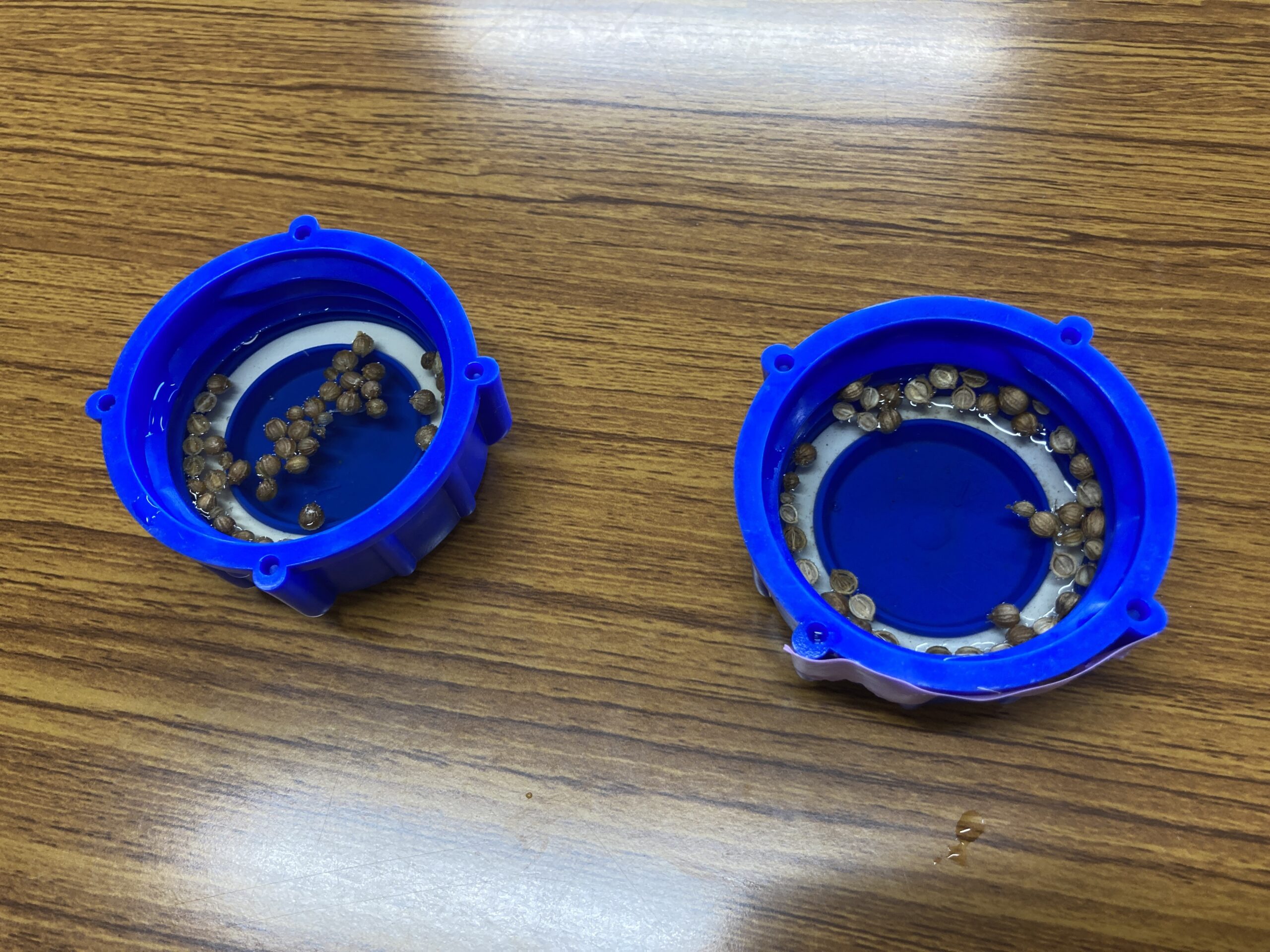 発端は、山内先生と川部先生と趣味の話をしていて、山内先生の趣味が料理だそうで、スパイスとかフライパンとかちゃんとしたものを使って、本格的な料理をしているらしく、じゃぁパクチーも好きということだったので、パクチーを育てることになりました。