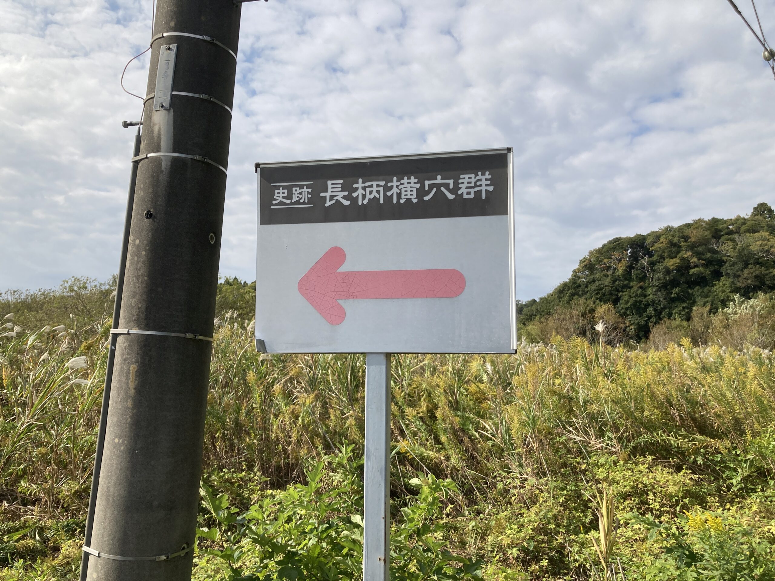 【長柄横穴群への案内板】