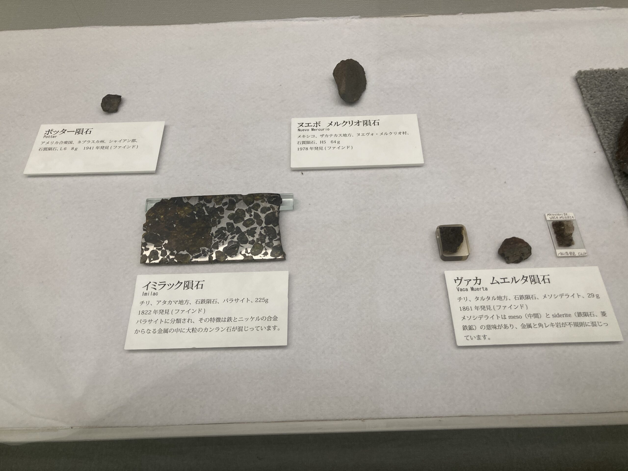 天文部門の常設展の目玉のひとつは、多分これ「隕石」に関する展示。世界各国の主な隕石が墜落した場所と、それら隕石の展示。隕石って高いものは、めちゃくちゃ高値で取引されているらしいが、これらの隕石はどうなのだろうか?