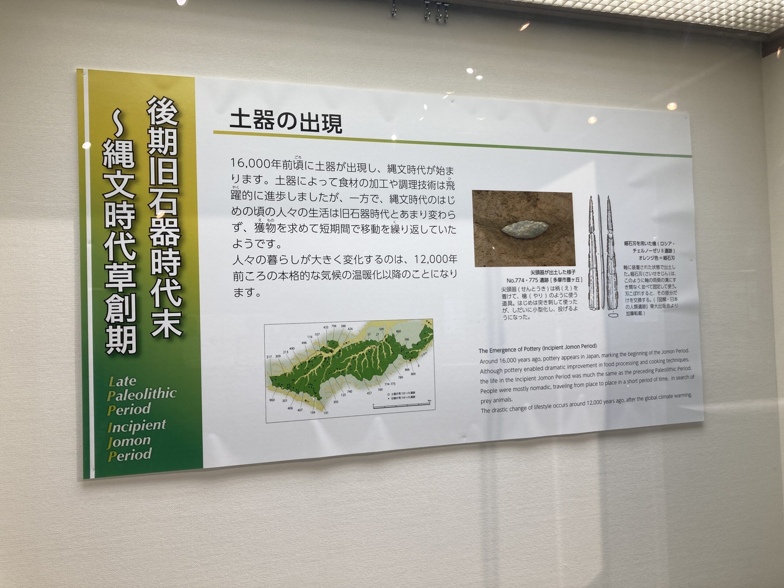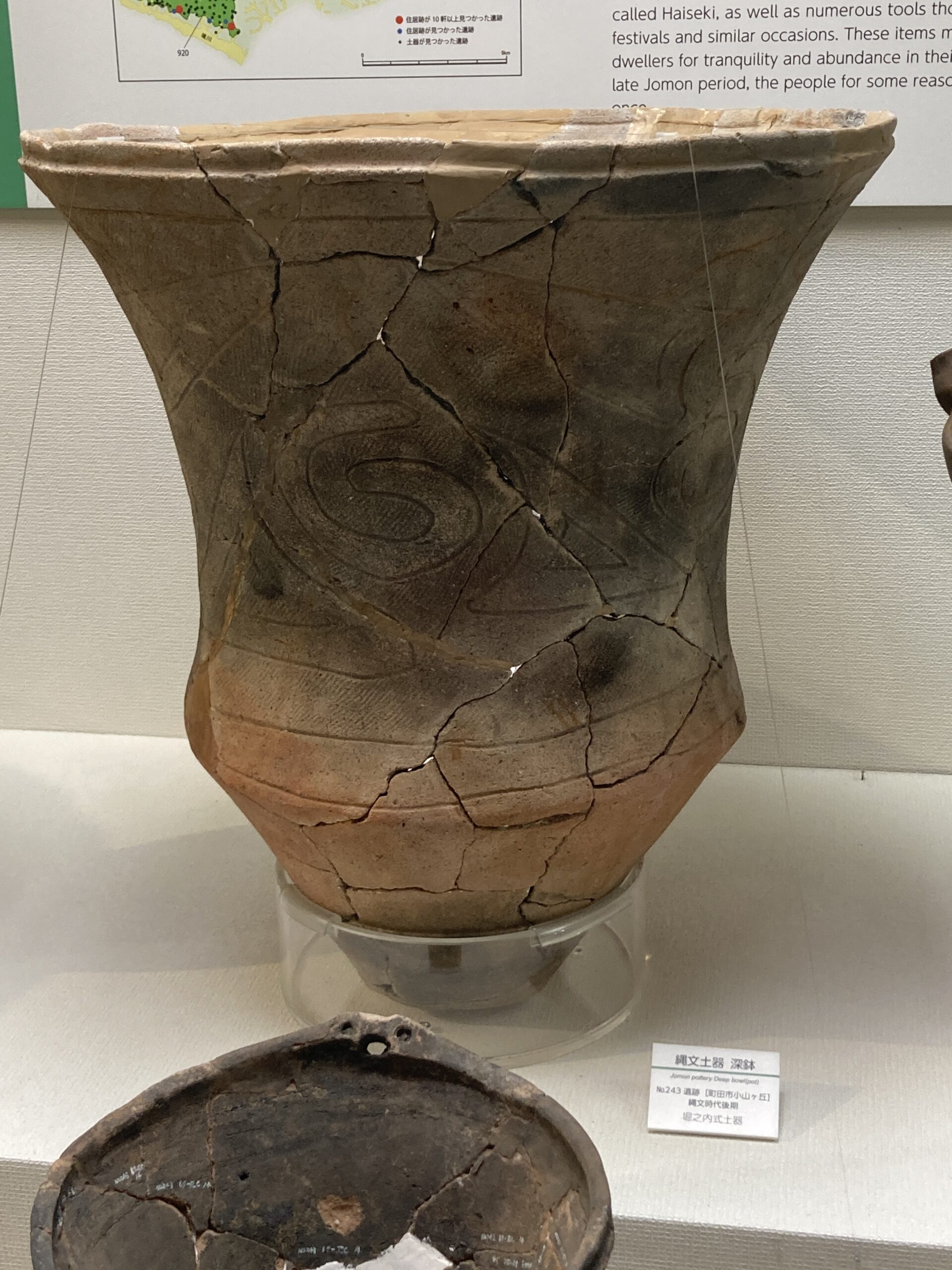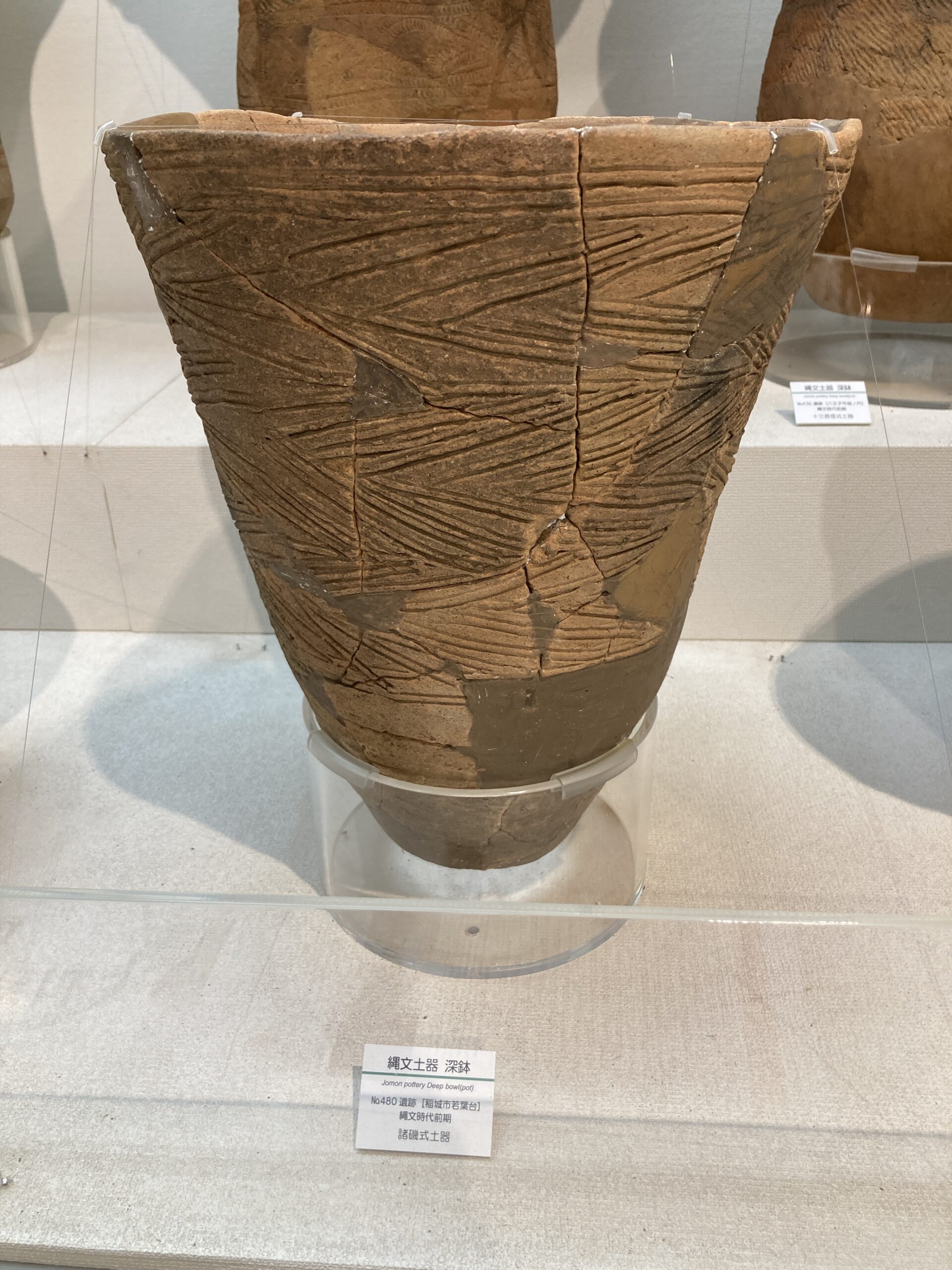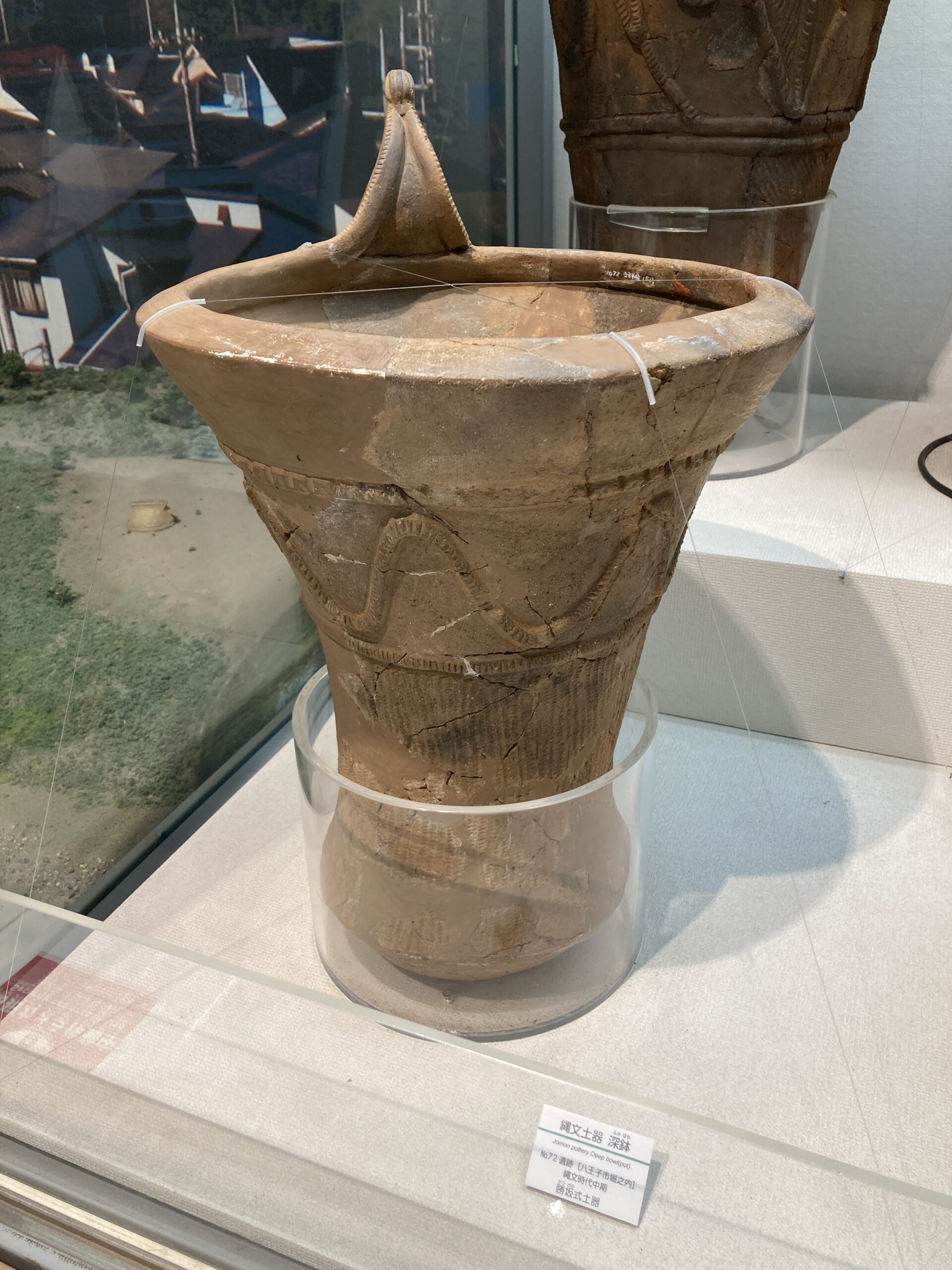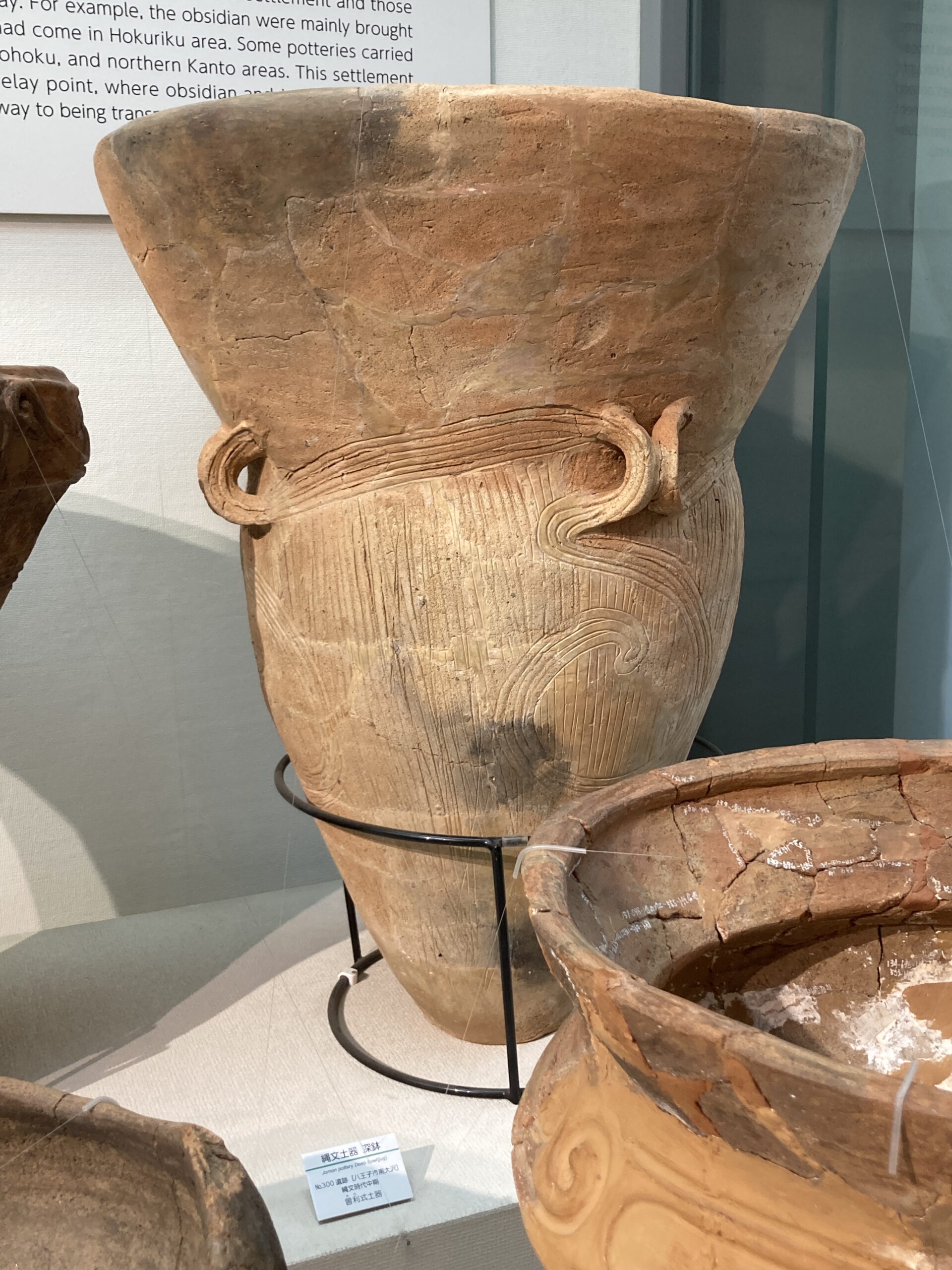 早期の土器は尖底のモノが多い。使いづらそうだけど、組んだ石の上で使うからそうでもないのかな?この写真だと、ネットで調べた子母口式土器の特徴は見受けられないがどうなんだろう?