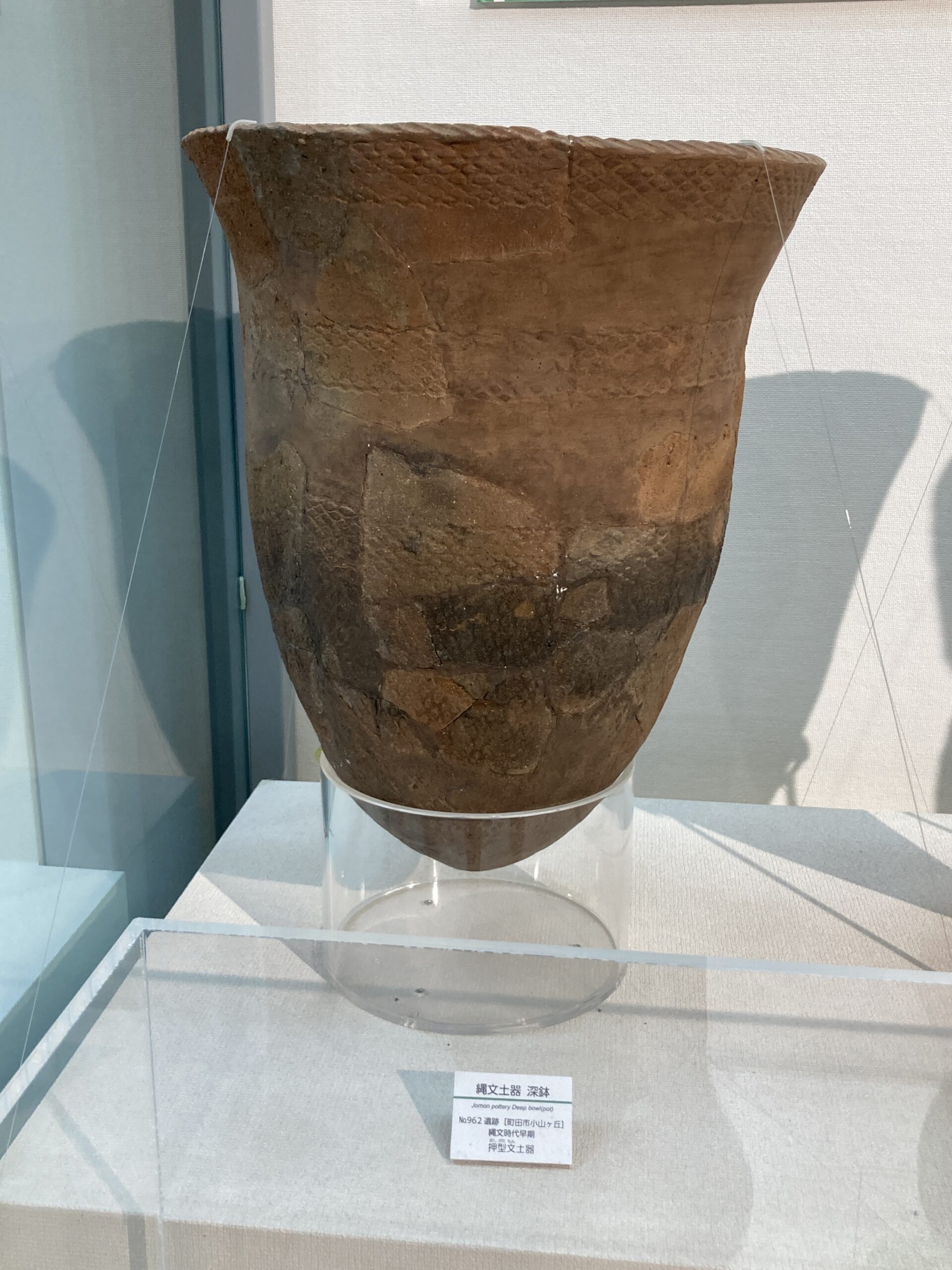 つづいて、縄文時代前期(約7000~5500年前)の土器。この頃は地球が最も温暖化し「縄文海進」がピークに達した時期だったらしい。