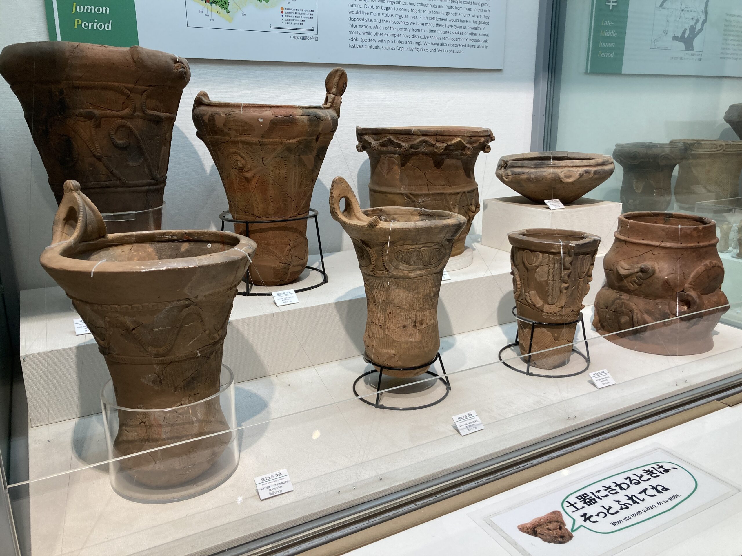 因みに、千葉だと阿玉台式土器、新潟だと火焔型土器、山梨や長野だと水煙式土器なんかが、縄文時代中期の土器の代表でそれらもド派手な作りになっているので、全国的にこの時期に土器の派手さがピークに達したってのが面白いね。