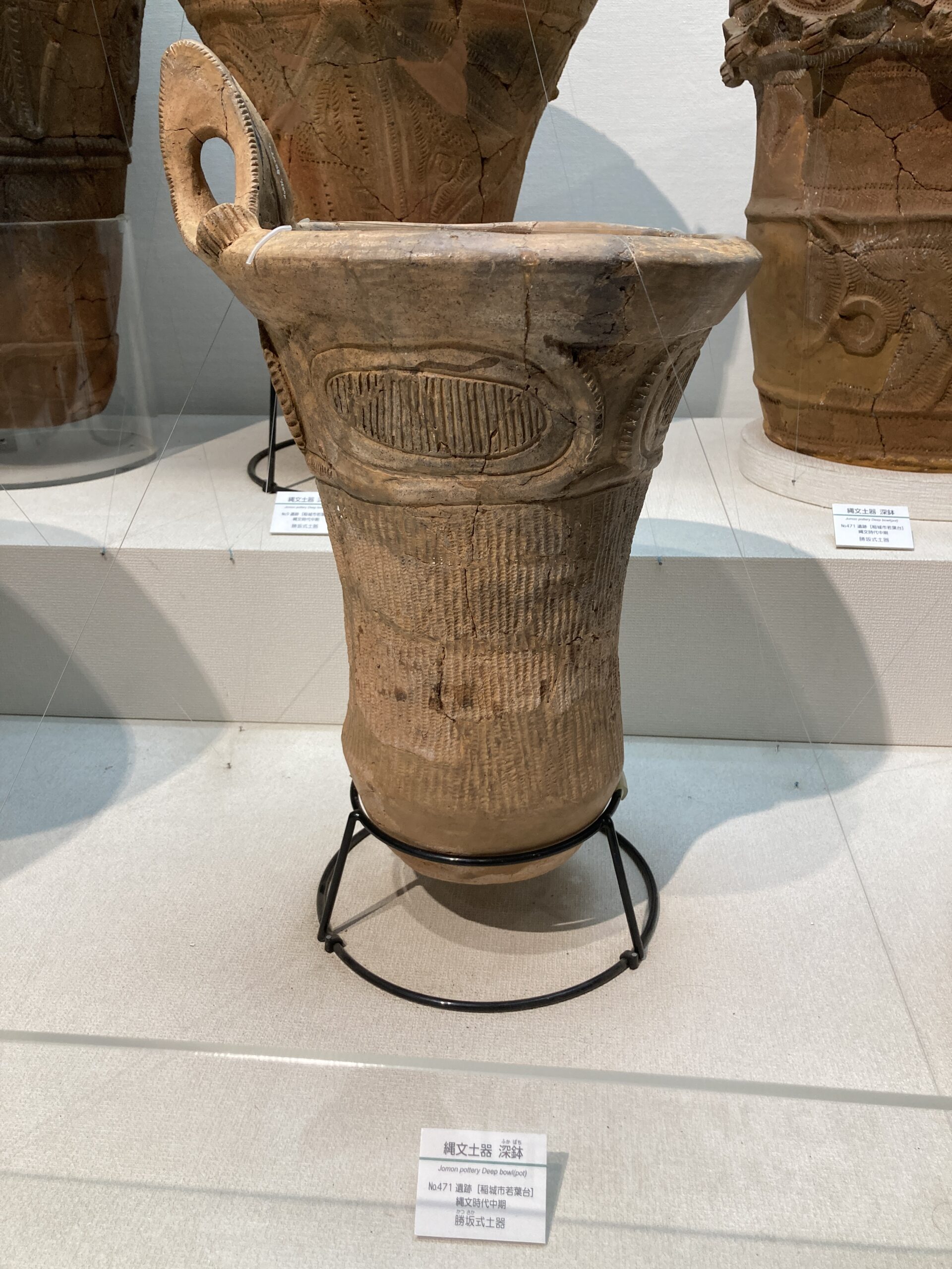 相模原市立博物館で展示されていた縄文土器も勝坂式が多かったから、神奈川とか関東でも西の方では、この型が主流だったんだろうね。