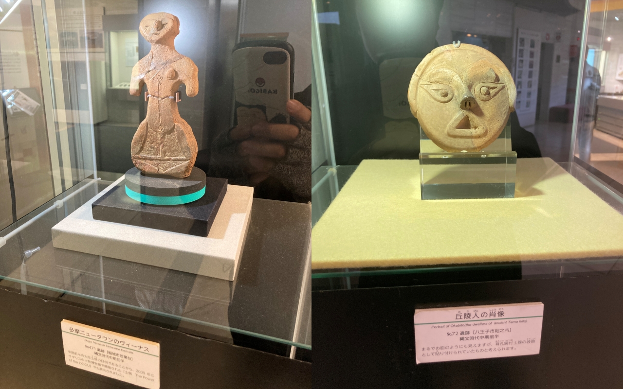 展示室前では「多摩ニュータウンのビーナス」と「丘陵人の肖像」がでーんとお出迎え!2つとも何とも言えない表情をしているのが非常にかわいい。