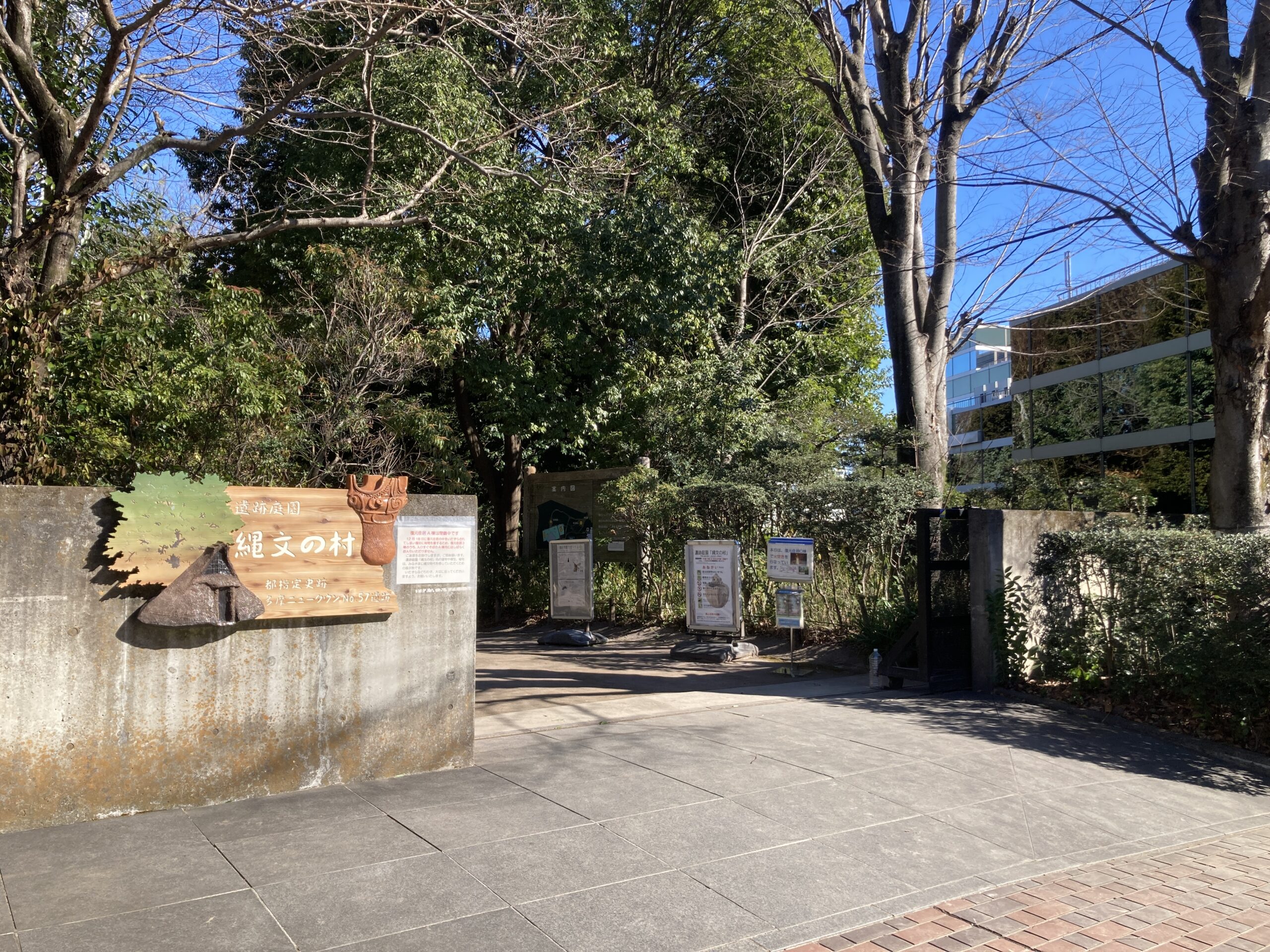 東京都埋蔵文化財センターには、縄文時代の環境を再現した遺跡庭園「縄文の村」がある。