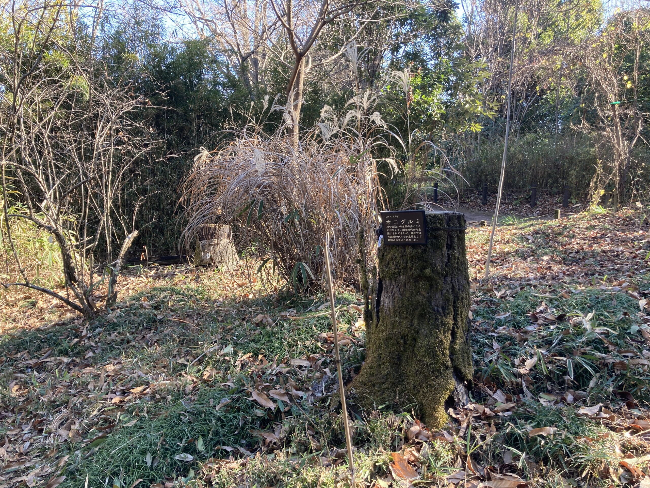 上の写真はオニグルミの木とノビル、どちらも食べられるので、そういった食べられる草木が豊富にある森で水場が近い場所に家を建てて集落を作っていたに違いない。