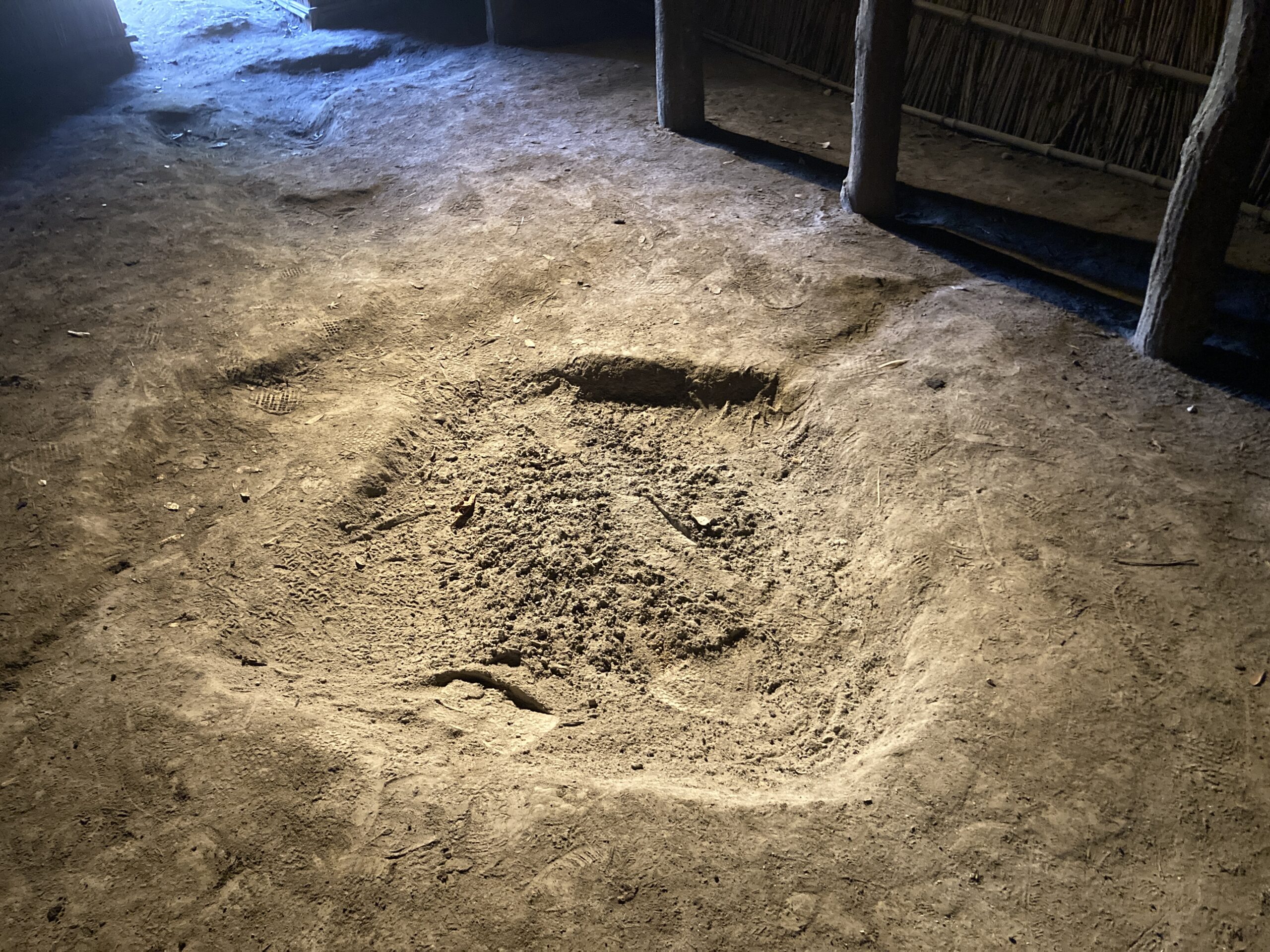 これは土器置き場かな?こんな風に普段使わないときは端っこに寄せていたんだと思う。