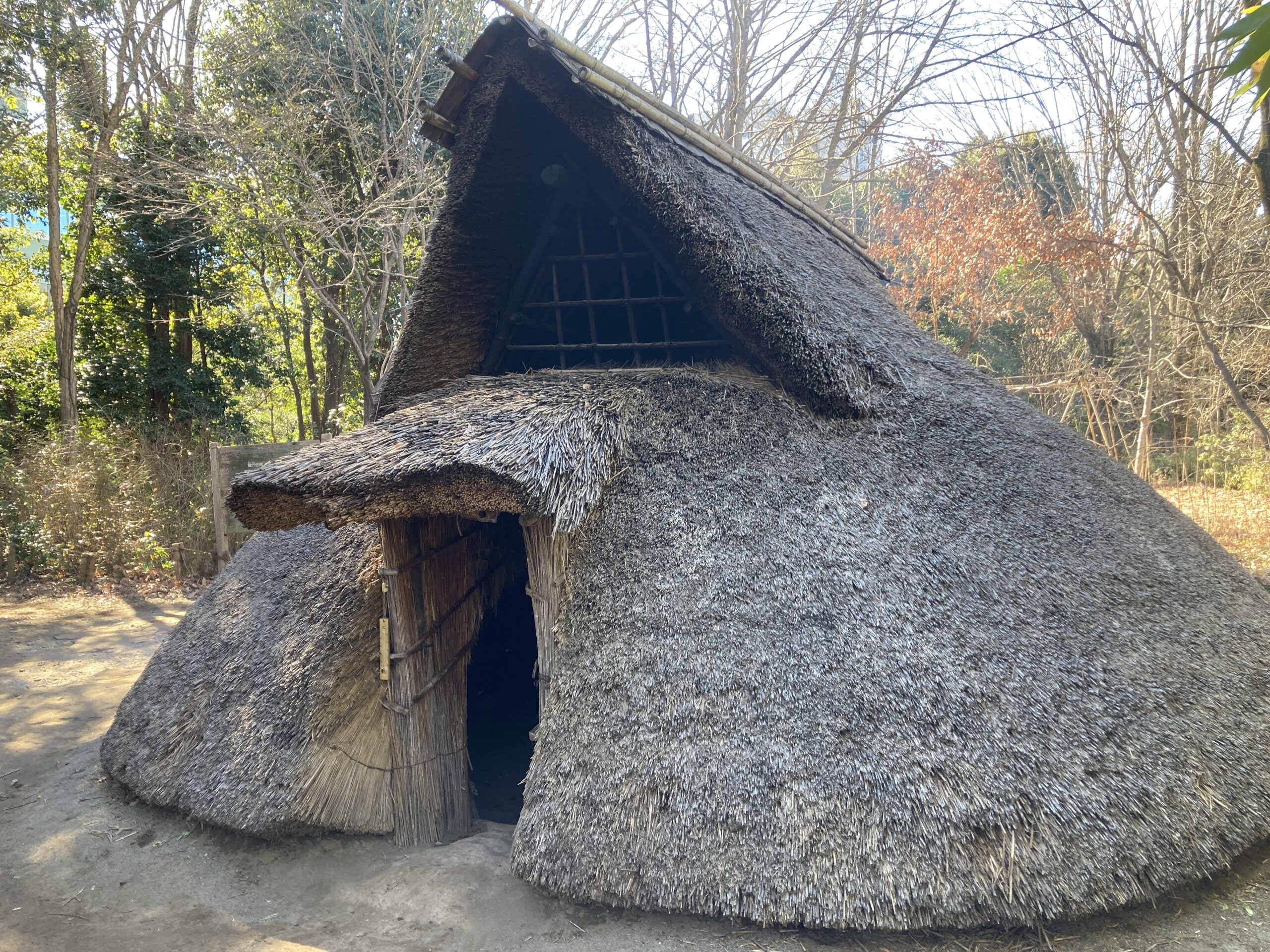 竪穴住居って、見た目的にすごい寒そうに感じていたんだけど、なかなかどうして、火が焚かれている意外に温かい。真冬なのに全然平気な温度だった。