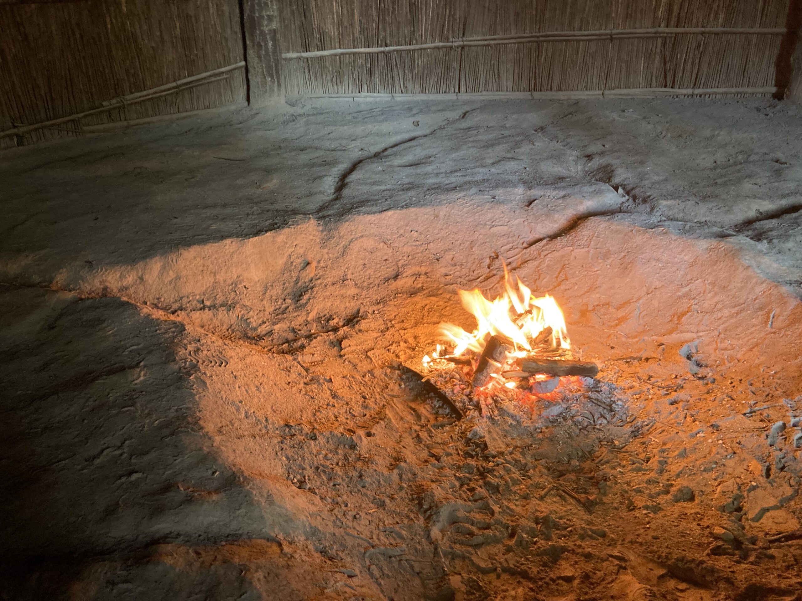 この日はちょうど焚き火の日だったので、火が焚かれていた。