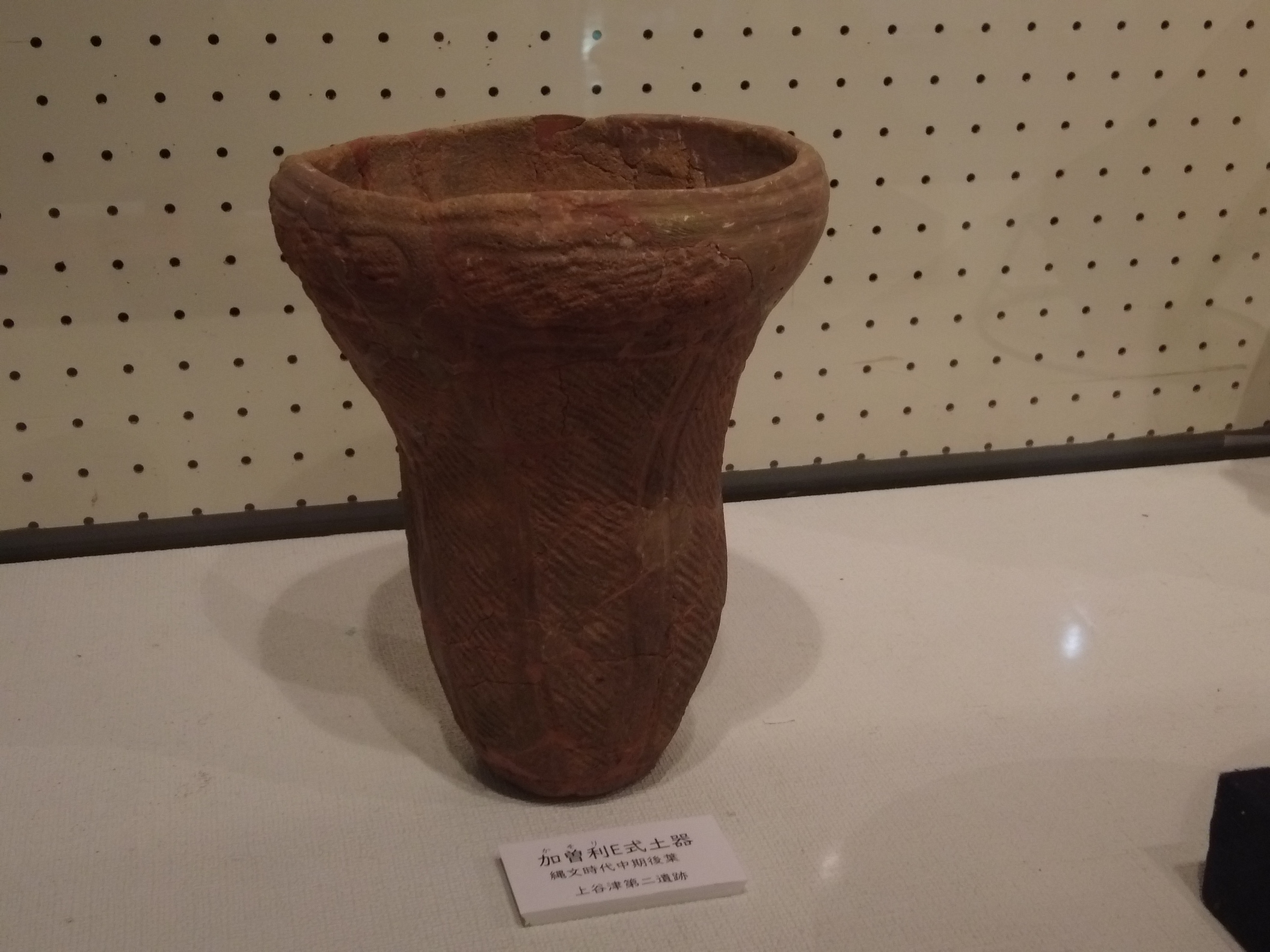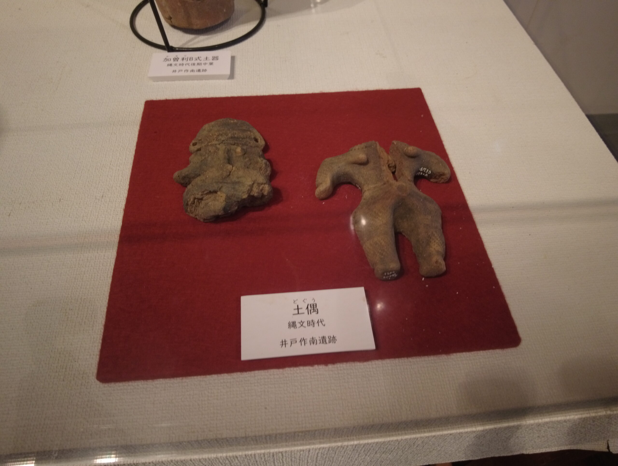 上の写真は展示されていた縄文土器や土偶。カソリーヌでお馴染みの加曾利貝塚で見つかった加曽利E式土器や加曽利B式土器、そして井戸作南遺跡で見つかった土偶など。