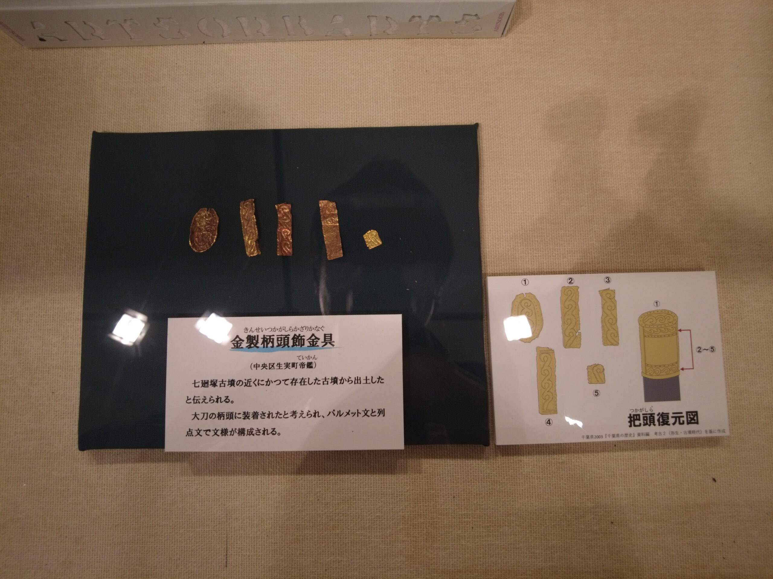 金製柄頭飾金具。博物館にある金製品ってレプリカが多い気がするけど、これは本物っぽい。レプリカって書いてないしね。