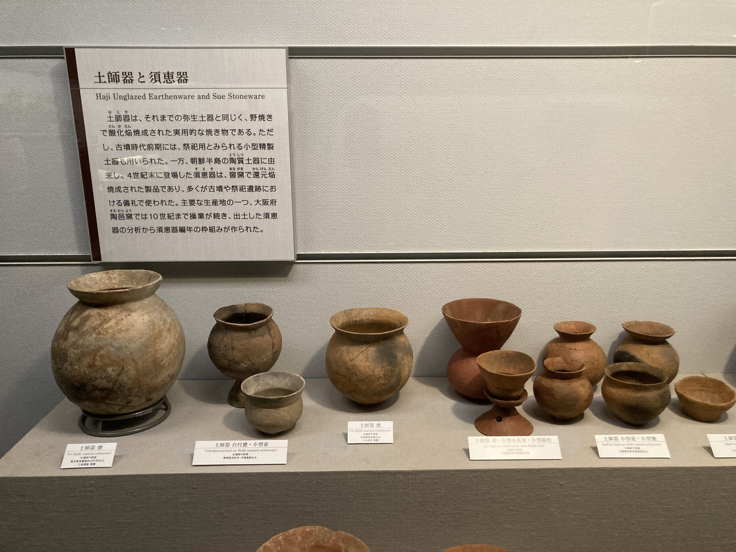 古墳時代の土器の特徴は、縄文時代~弥生時代と受け継がれてきた野焼きの土師器に加えて、4世紀末に朝鮮半島から伝わった穴窯で焼く須恵器の登場だと思う。