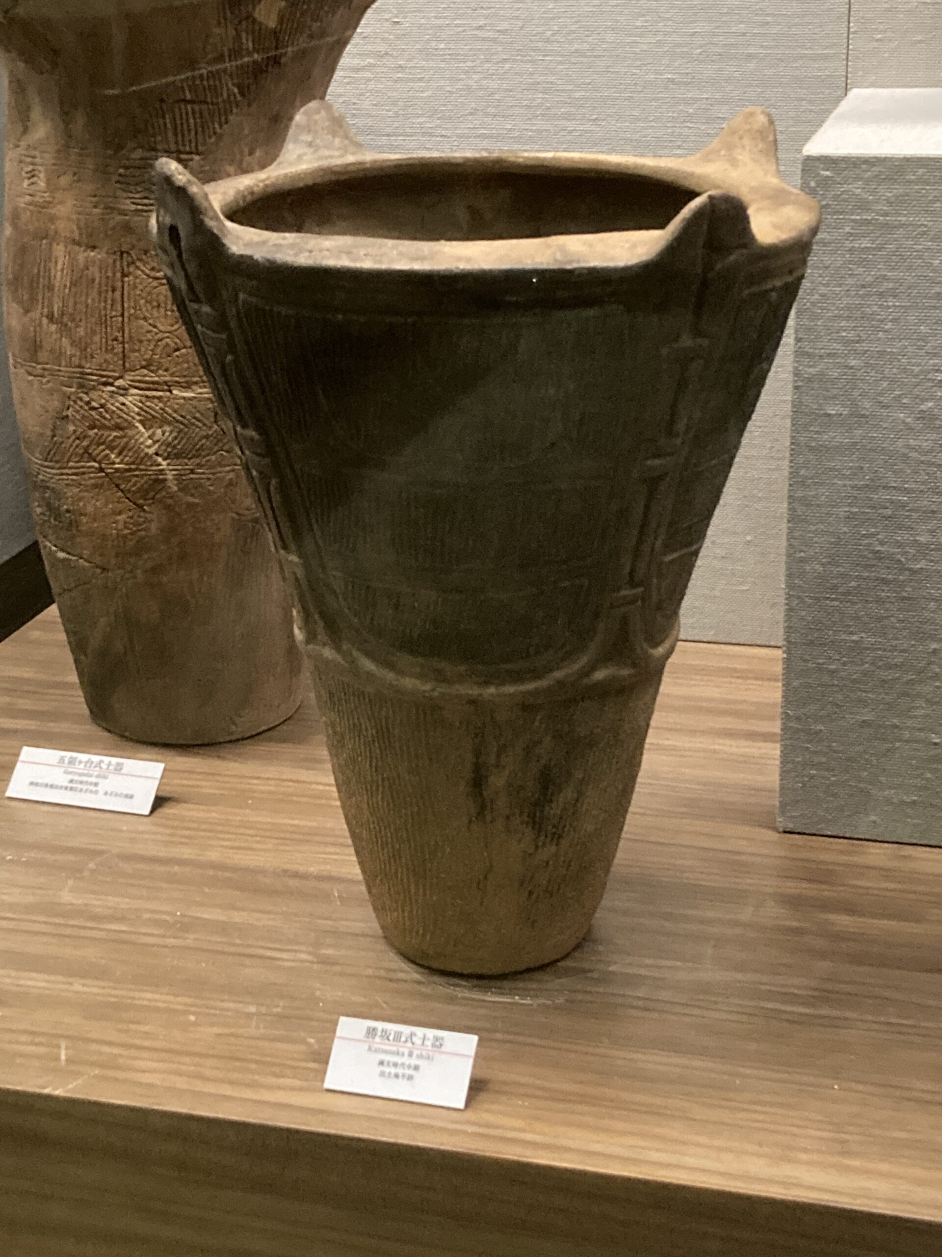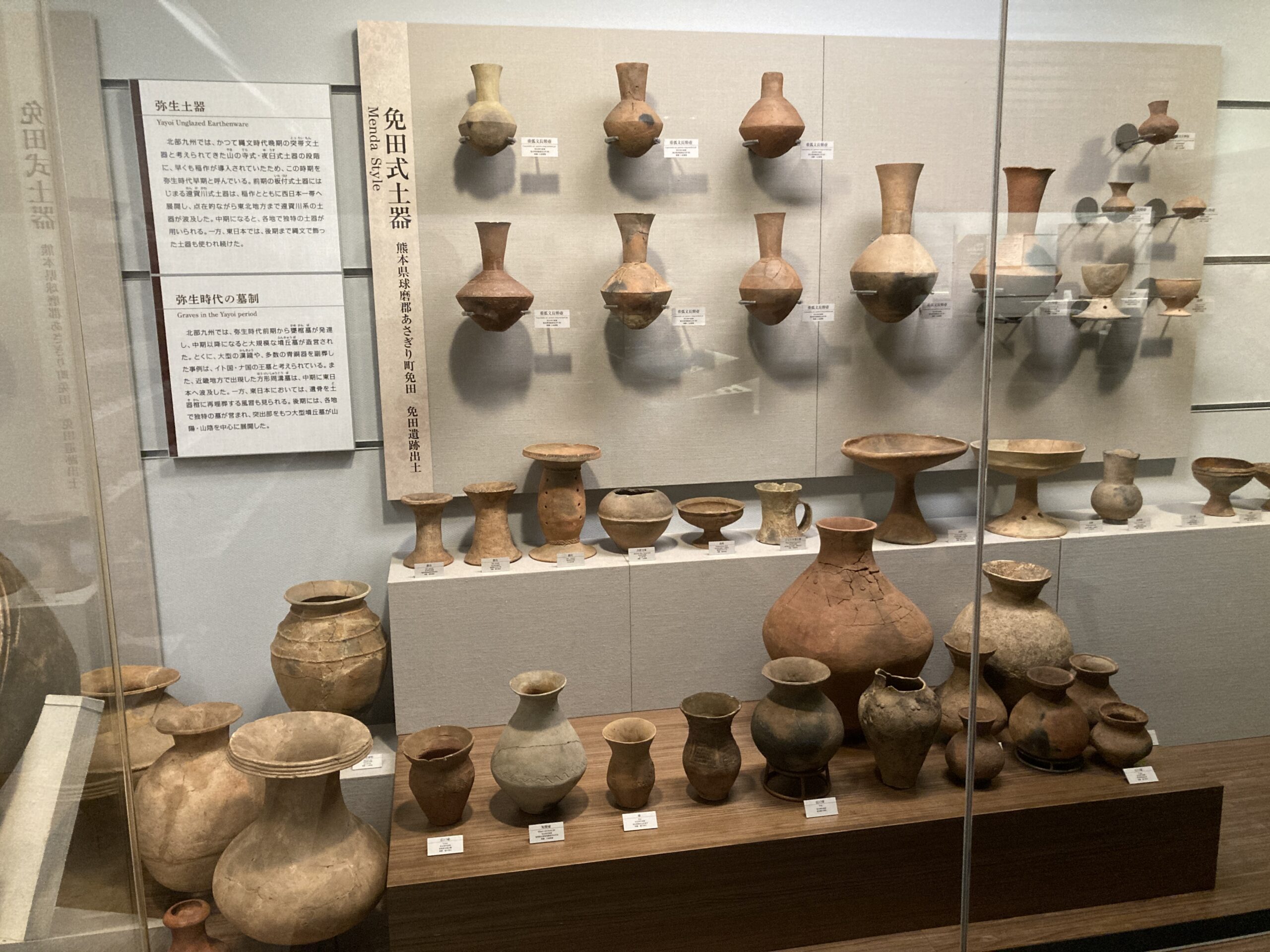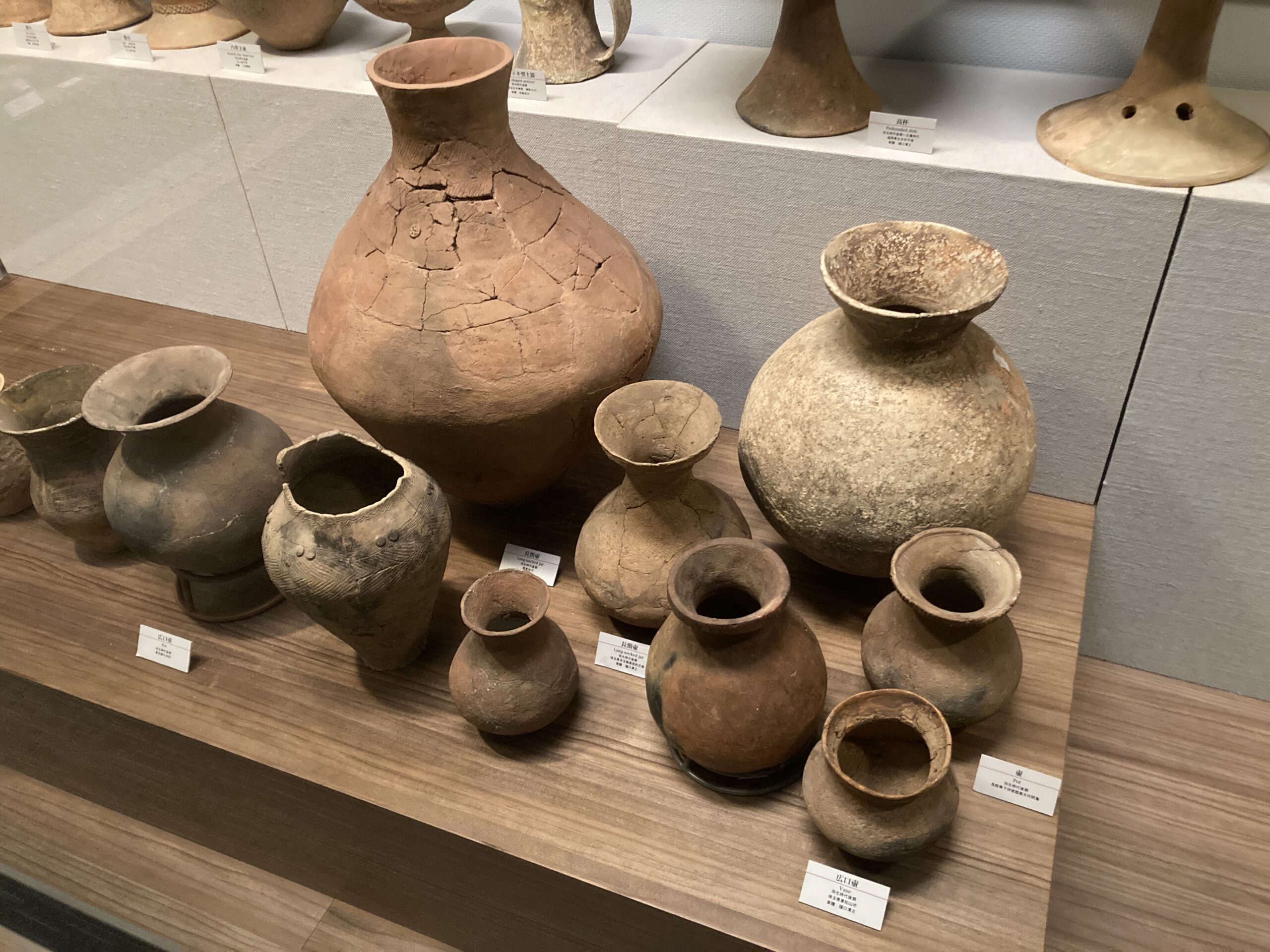 弥生時代といえば、稲作が始まったということで知られているけど、坪型の土器が増えた気がする。展示されている土器が、たまたま坪型なだけかもしれないけど、穀物を保存するのに坪型の方が都合が良かったのかもしれない。