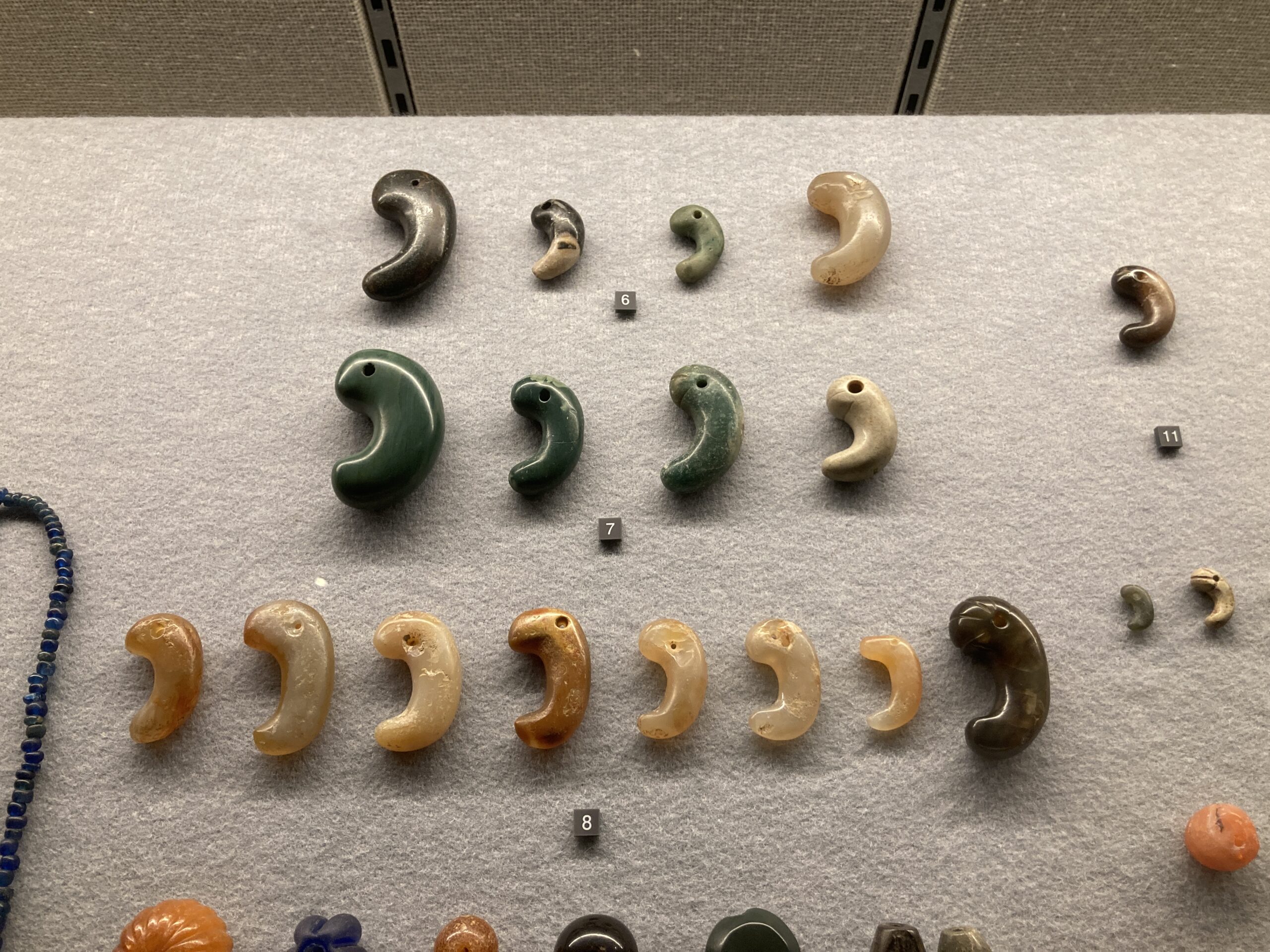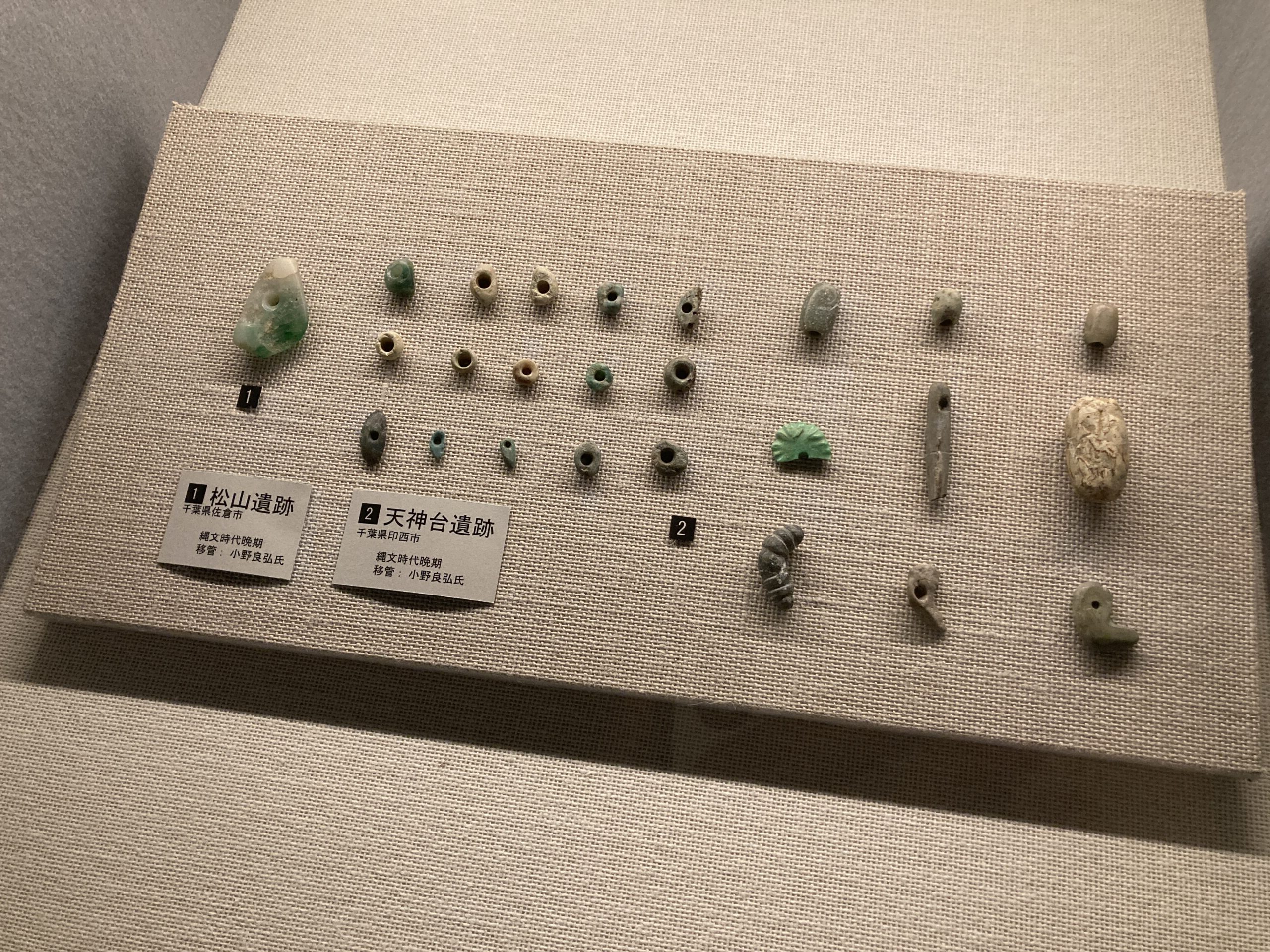ヒスイの装身具。ヒスイは新潟産のモノが多いらしいけど、現在でも新潟の糸魚川なんかは、ヒスイの産地で有名よね。そういえば、叔父さんの家が糸魚川にあった気がするな。
