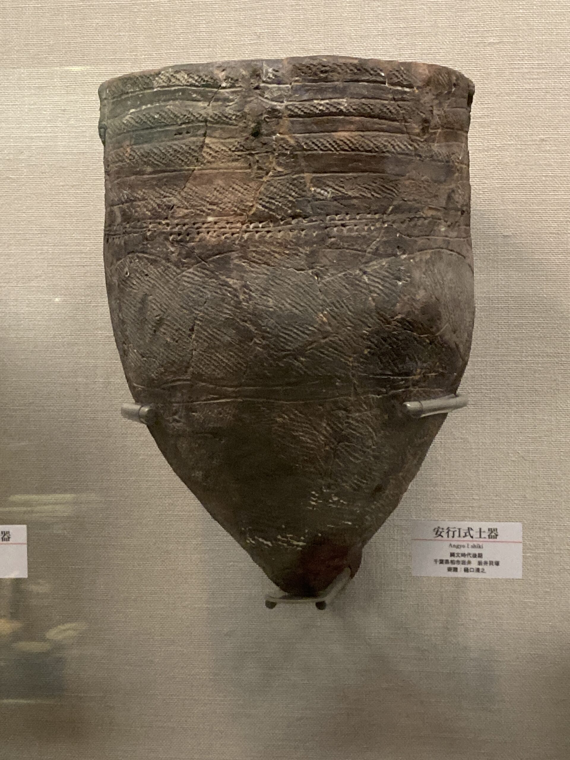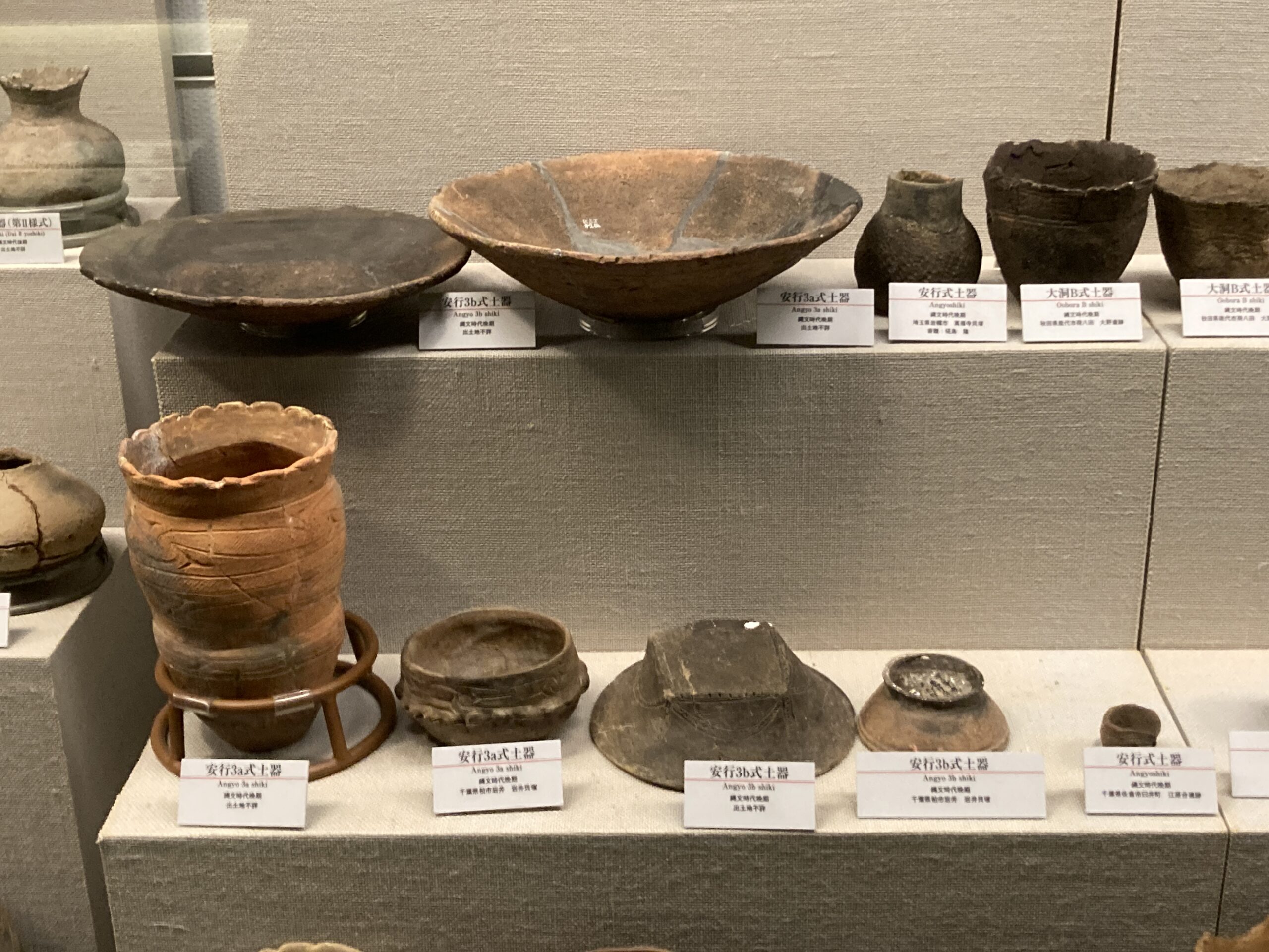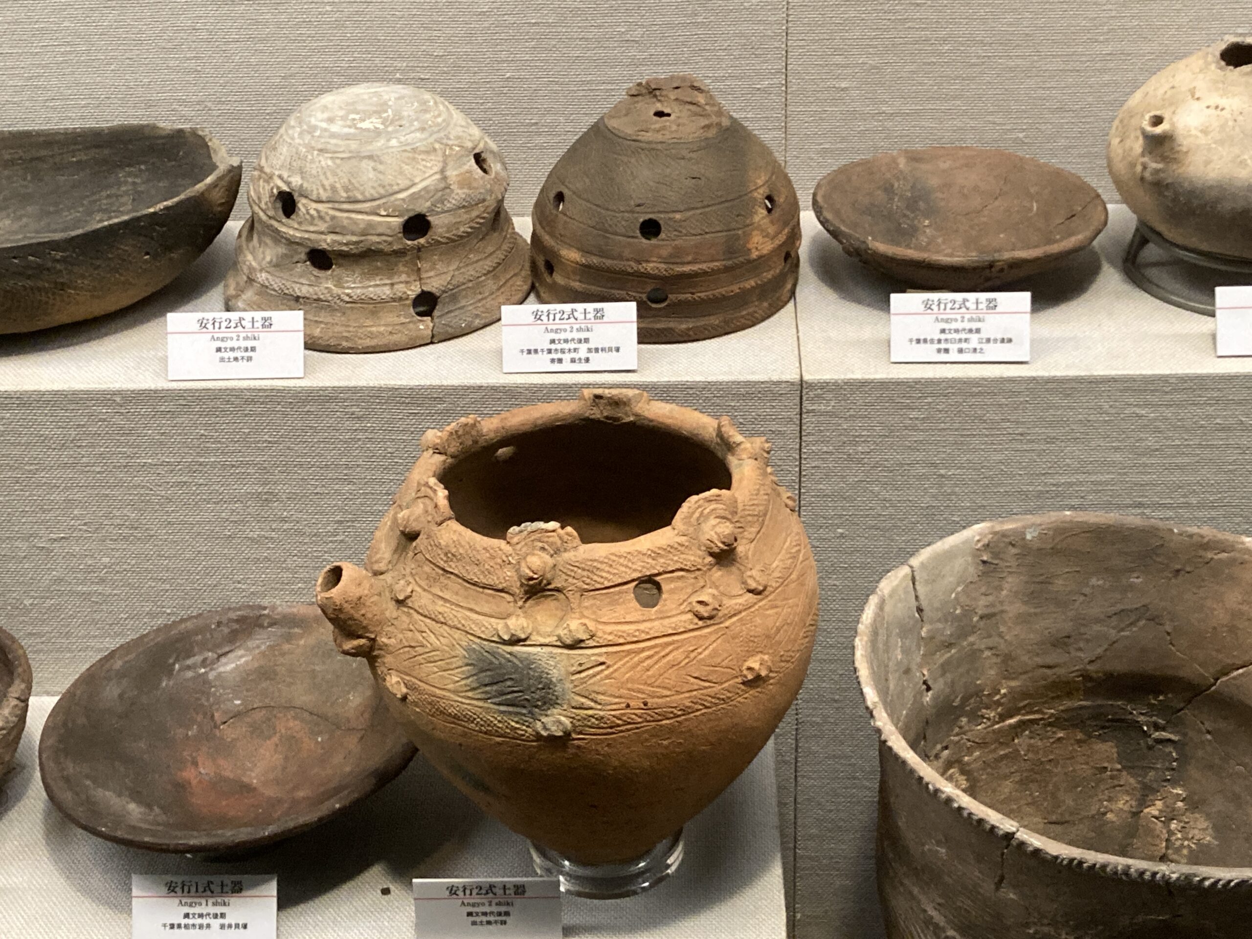 安行式土器(あんぎょうしきどき)。標式は埼玉県川口市の猿貝貝塚。縄文時代後期中葉から晩期(約3000〜2500年前)にかけて、主に関東地方で製作・使用された土器