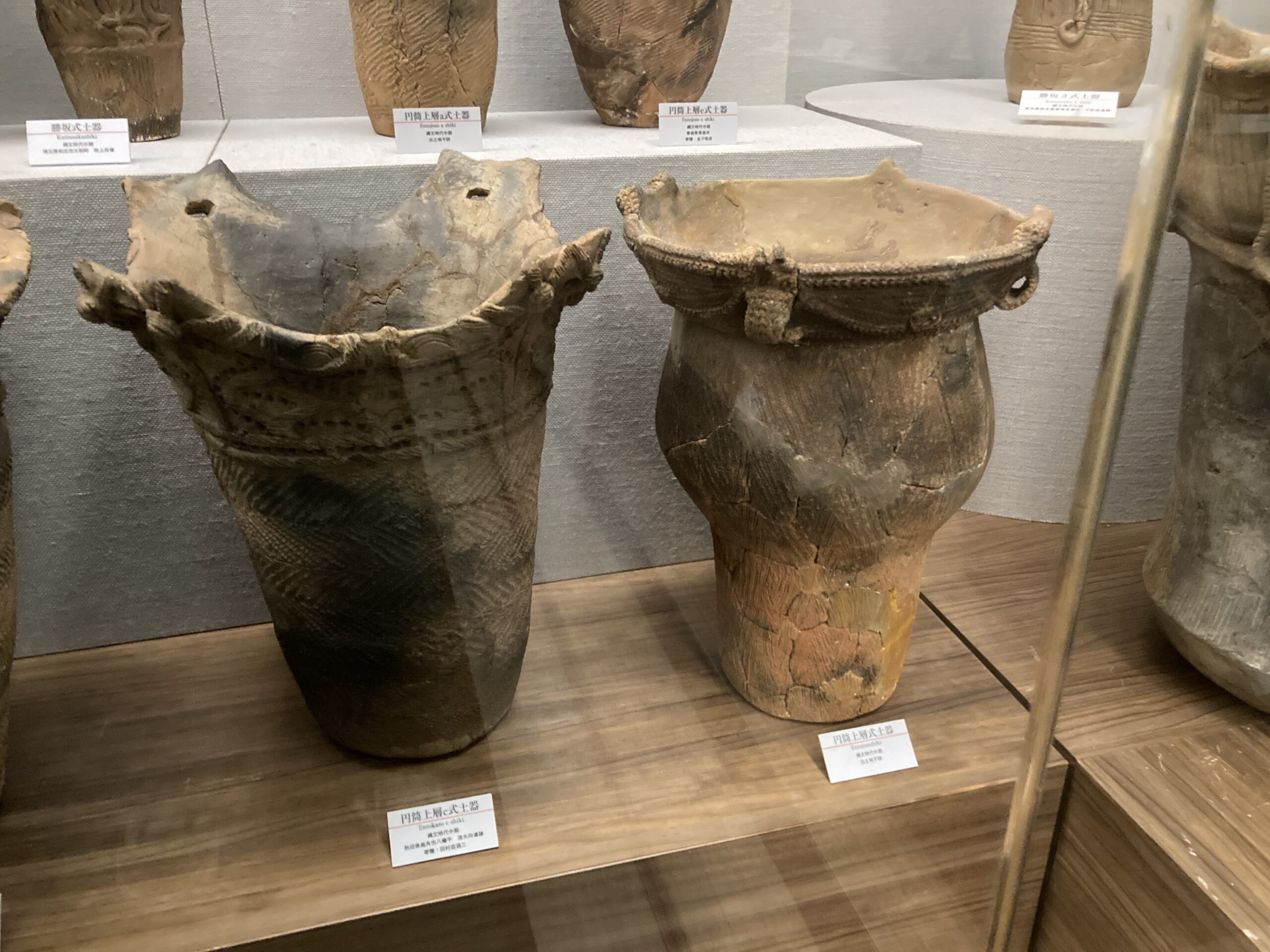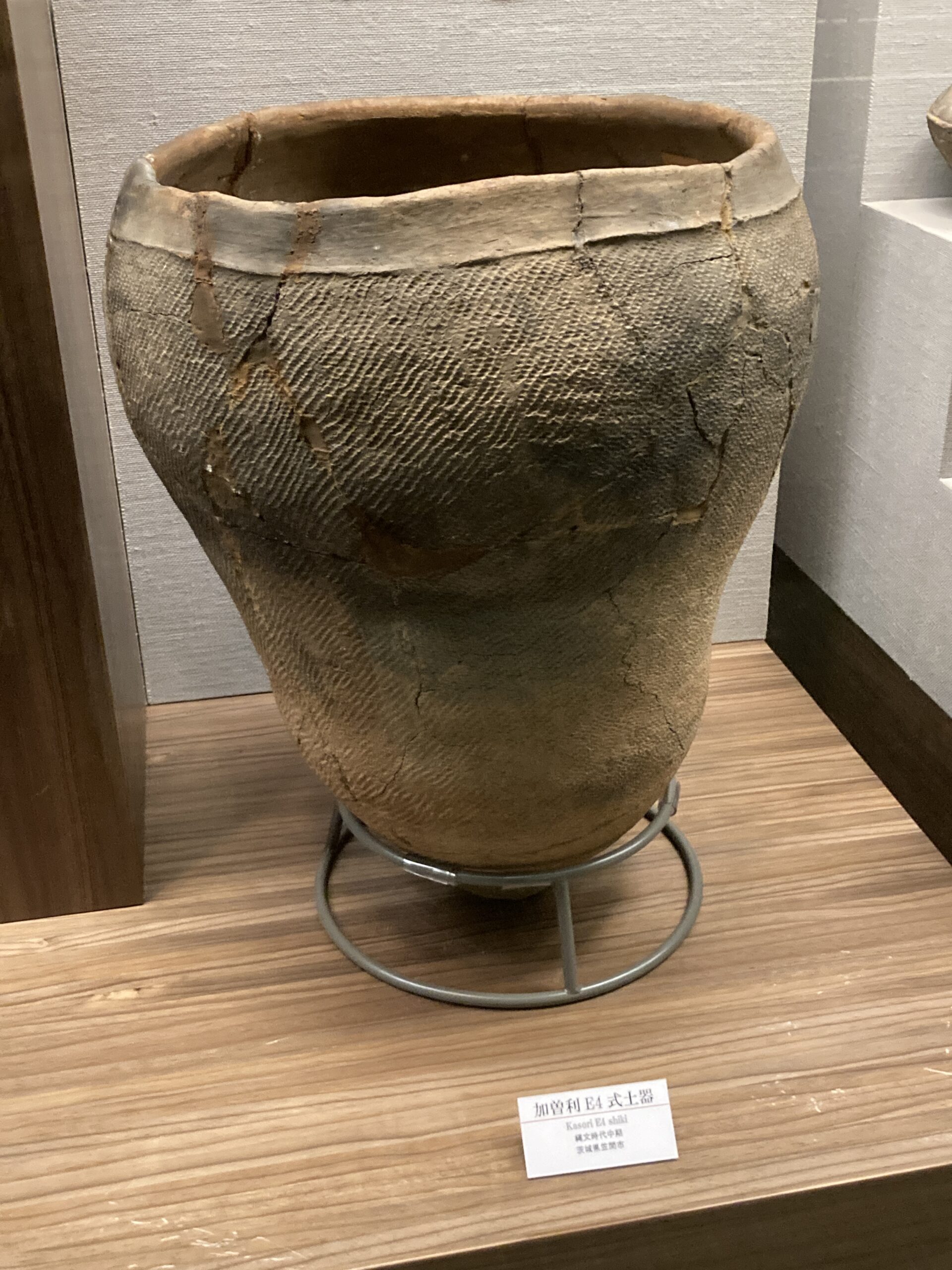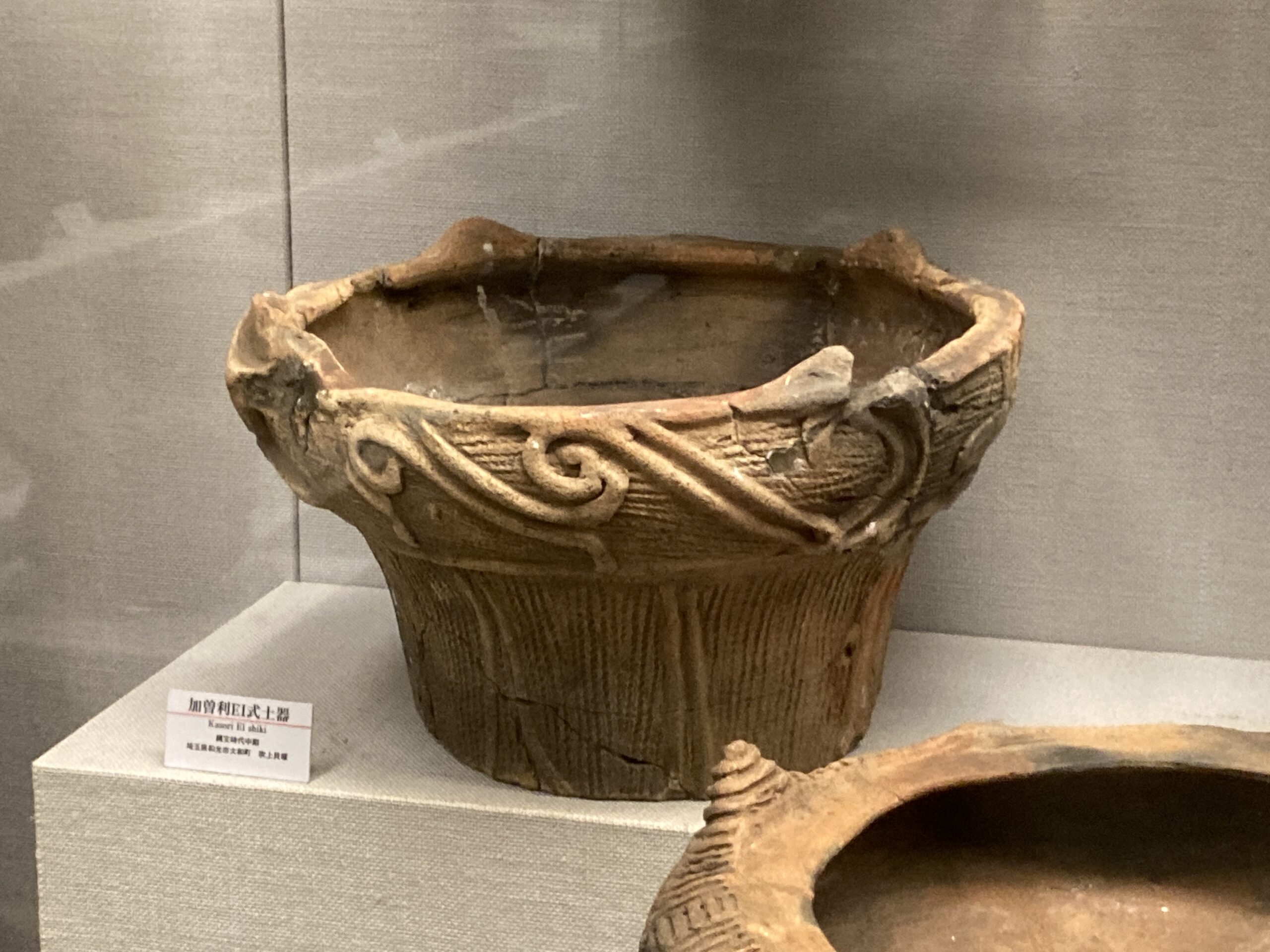 加曽利E式土器(かそりEしきどき)。標式は千葉県千葉市若葉区の国特別史跡・加曽利貝塚のE地点。加曽利貝塚のB地点は、後期の加曽利B式土器(かそりBしきどき)の標式遺跡となっている。