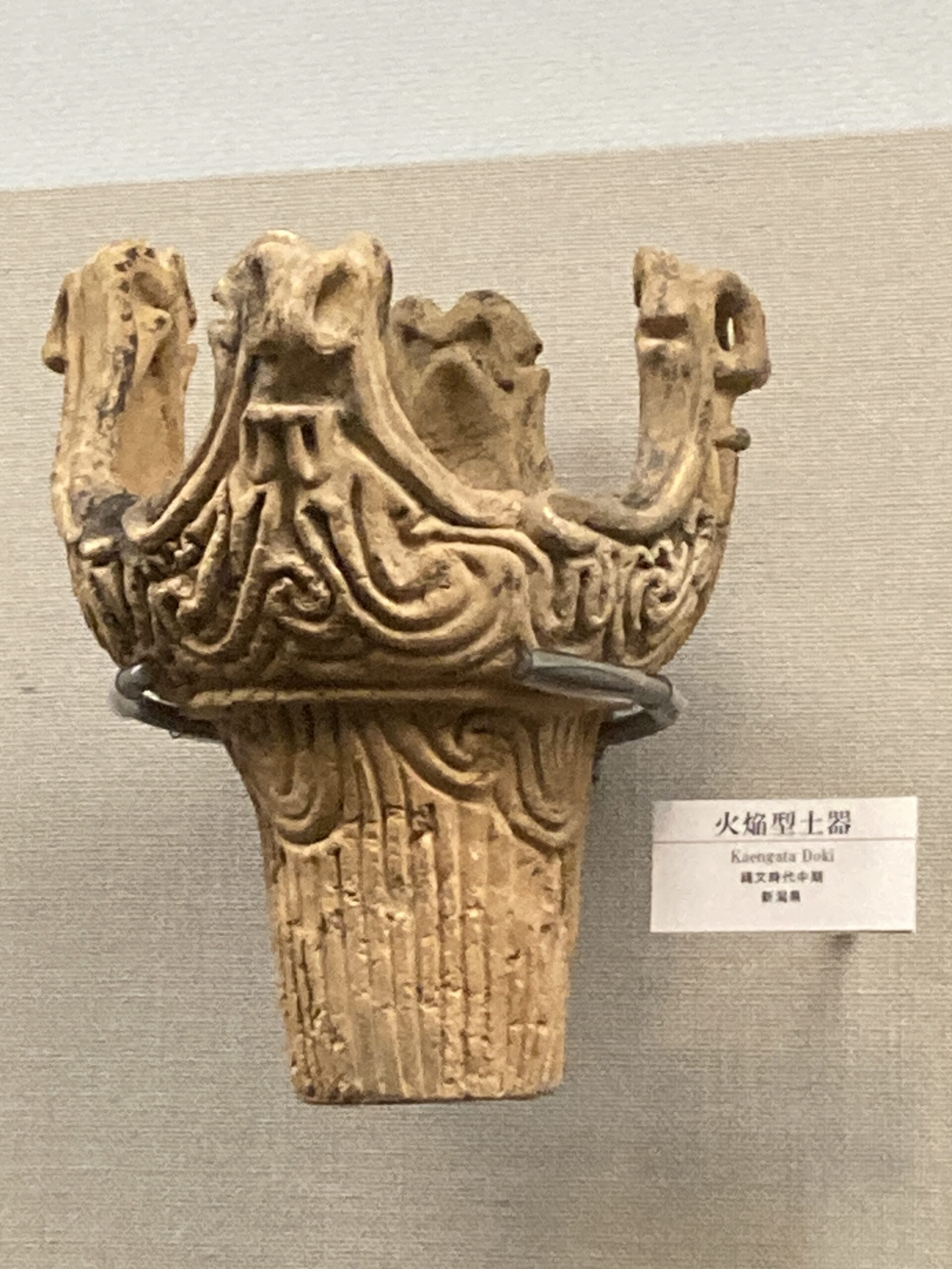 火焔型土器(かえんがたどき)は、縄文時代中期(約5000年前)に新潟県の信濃川流域を中心に作られた、燃え上がる炎のような鶏冠状(けいかんじょう)の突起が特徴的な深鉢形土器。