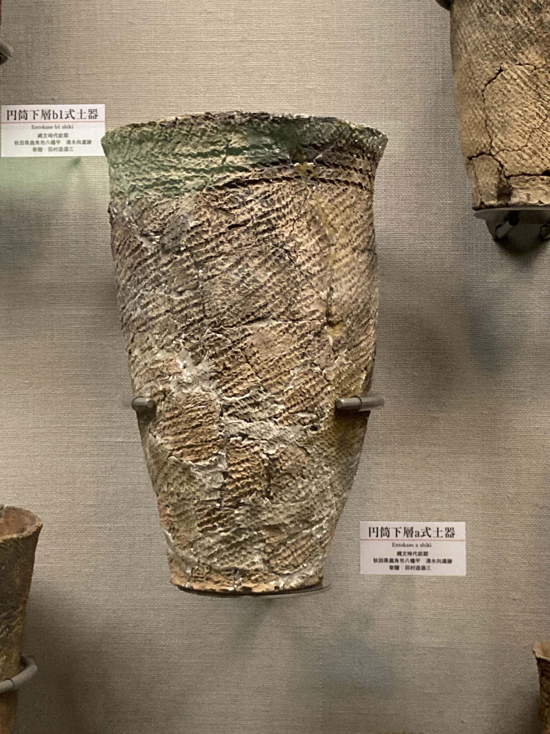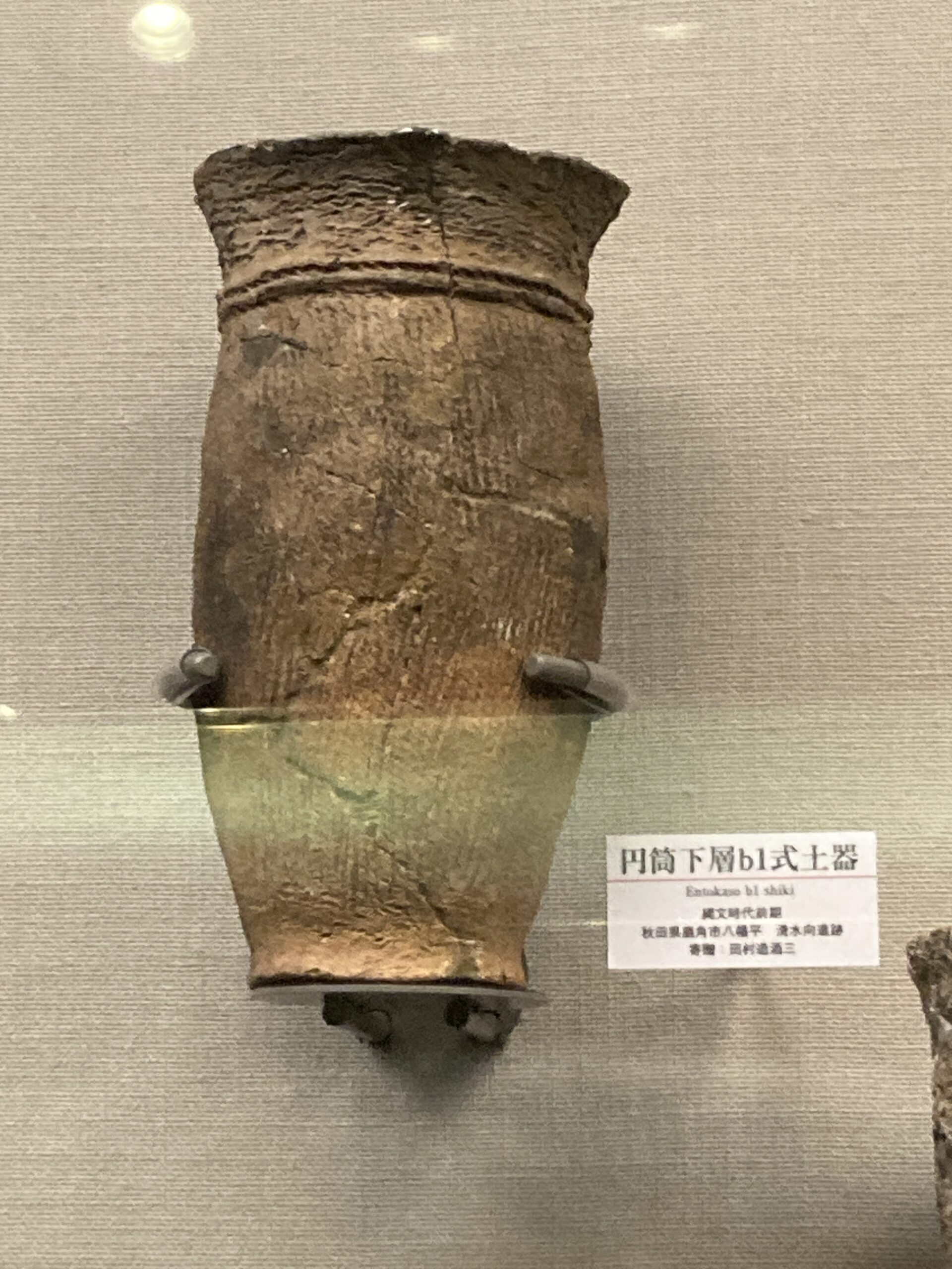 円筒下層式土器(えんとうかそうしきどき)。縄文時代前期(約6000〜5000年前)に北東北から北海道南部で栄えた土器。