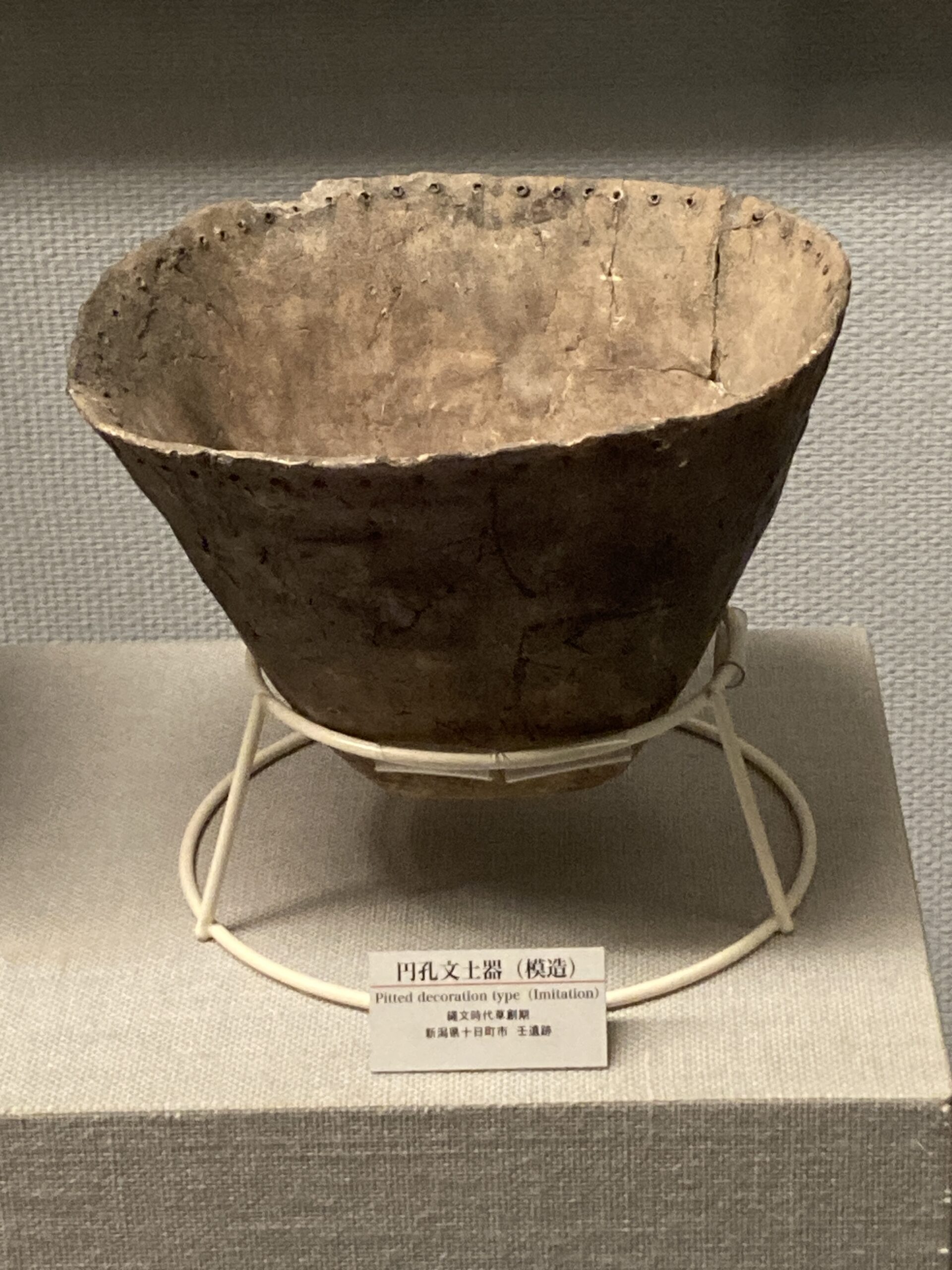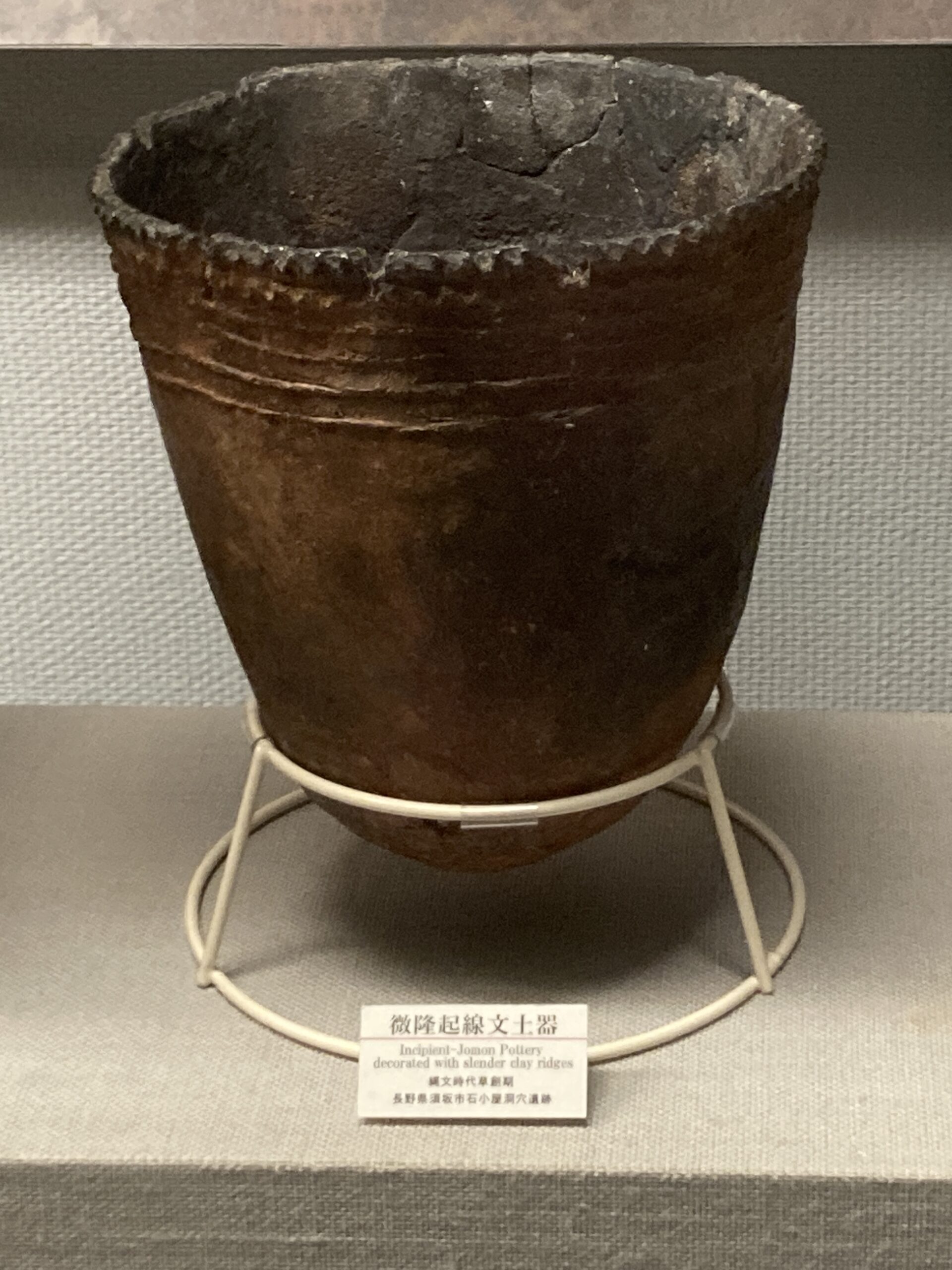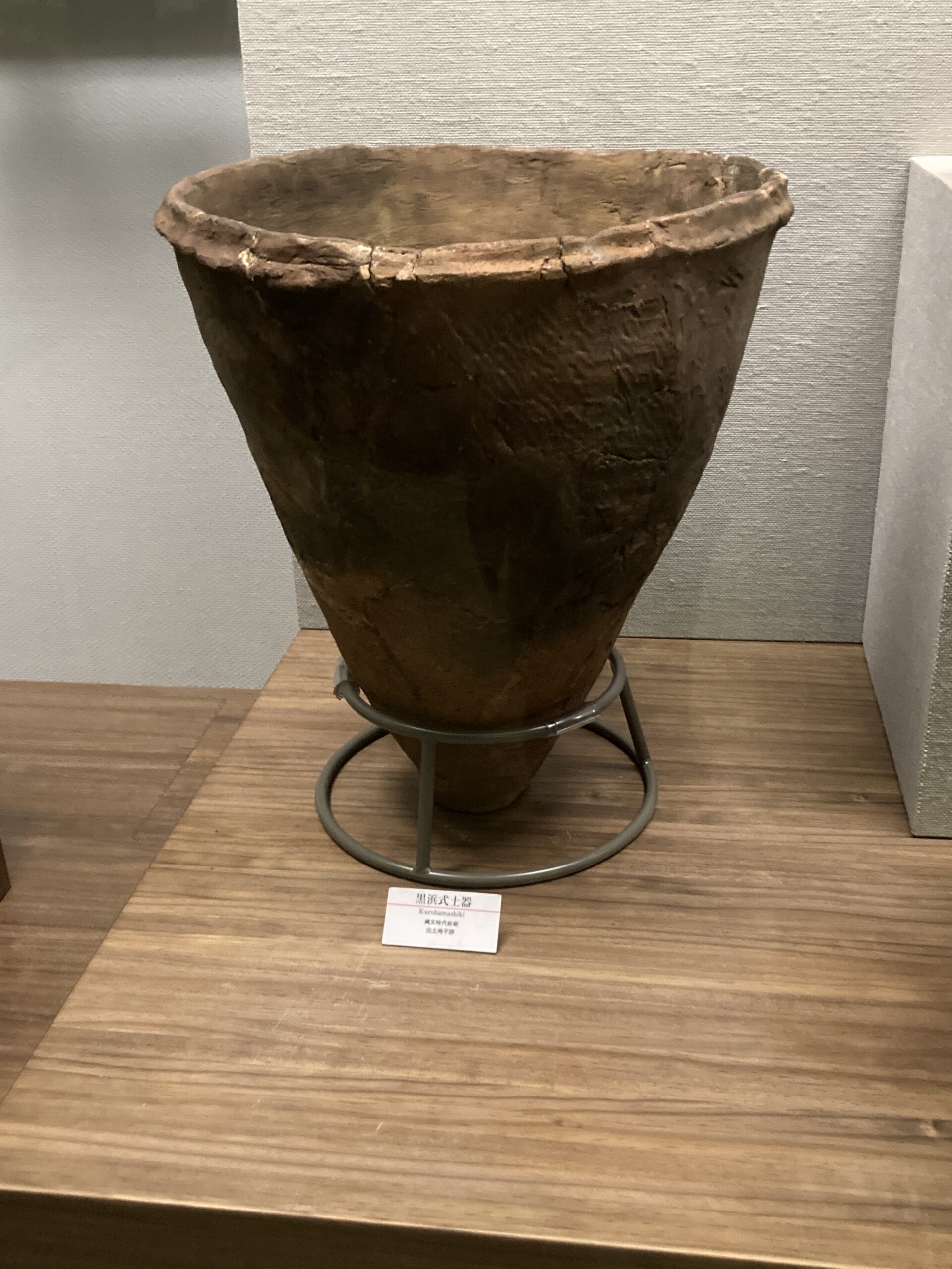 土器が登場した草創期は、シンプルな文様で、底が尖ったタイプの土器が多い。自立できない形から、囲った石の上とかに置いて使ったんじゃないかな?