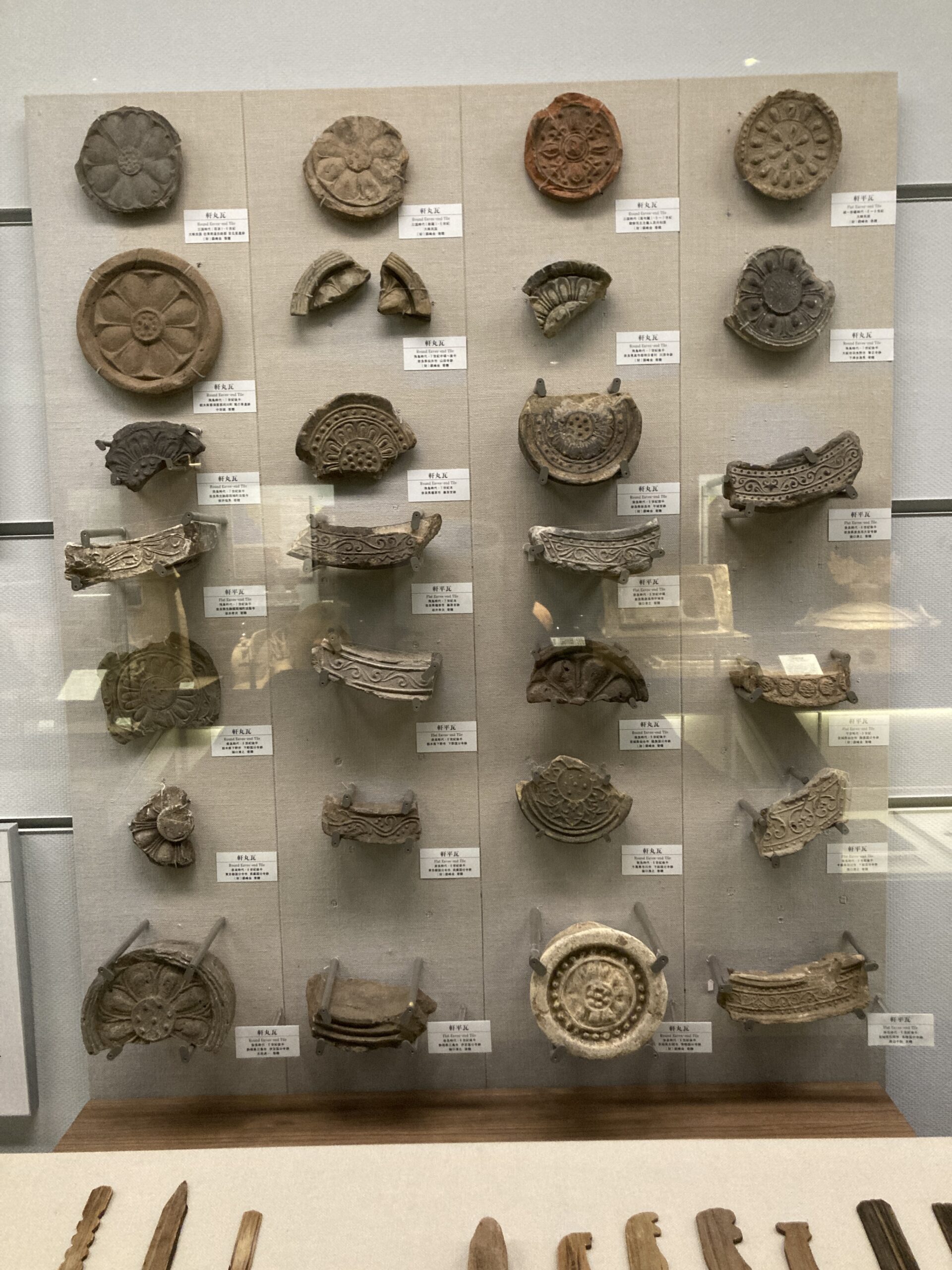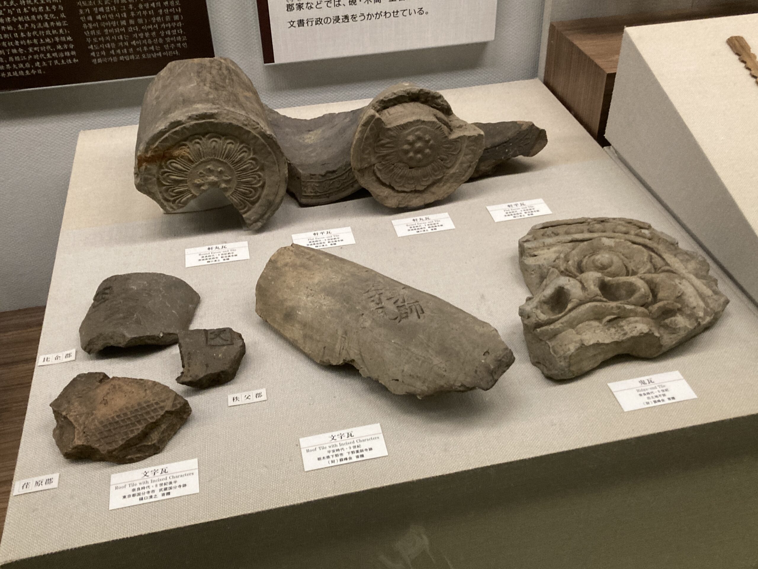 というわけで「瓦」です。瓦の模様や形にもそれぞれ意味があるんだろうけど、さっぱり分かりません。ただまぁ、瓦は現代にも引き継がれているということを思うと、廃れてしまった土偶や埴輪とは違う感じがするね。