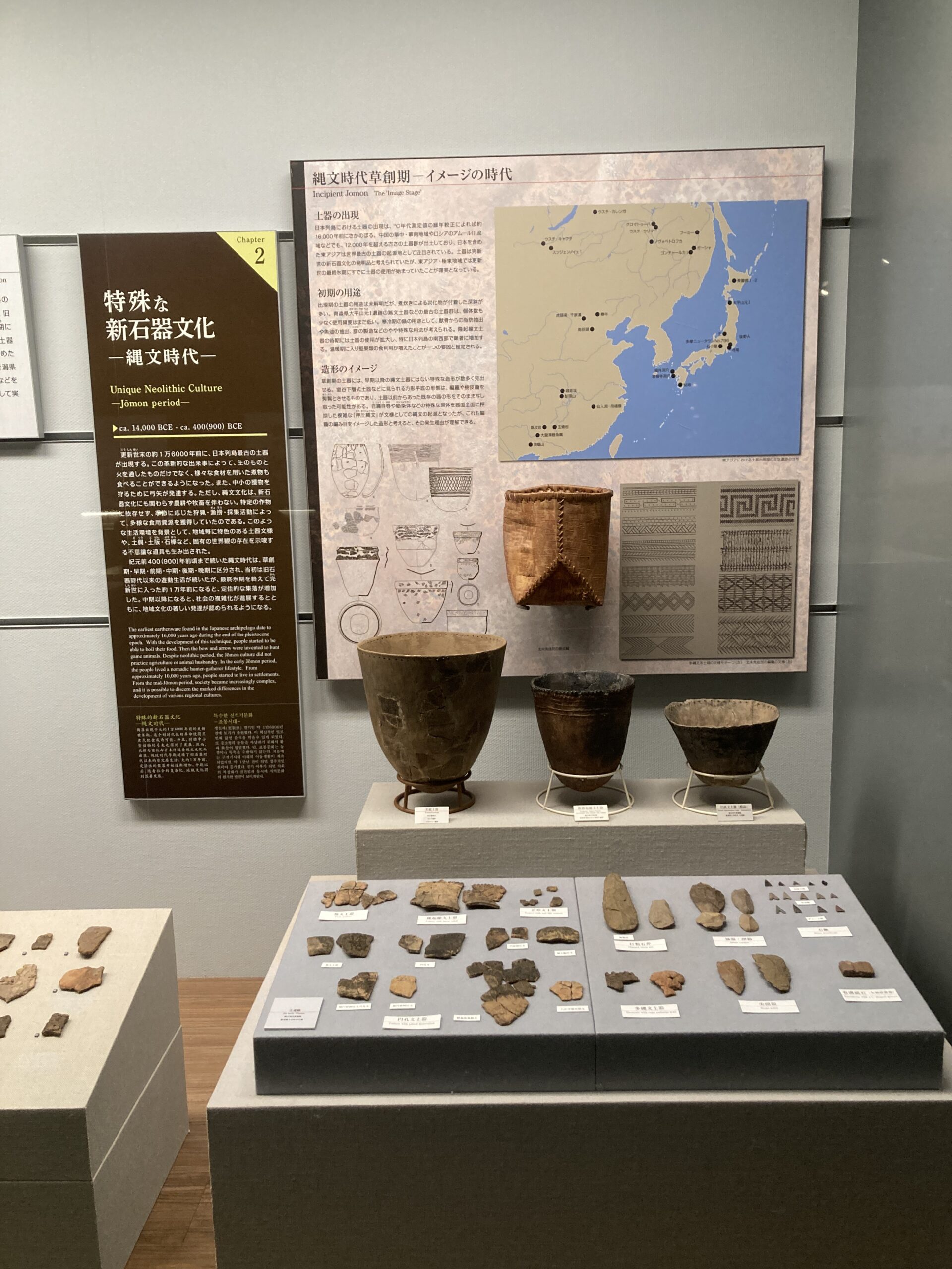 前期になって、少しずつわかりやすい文様がついた縄文土器が出現し始める。