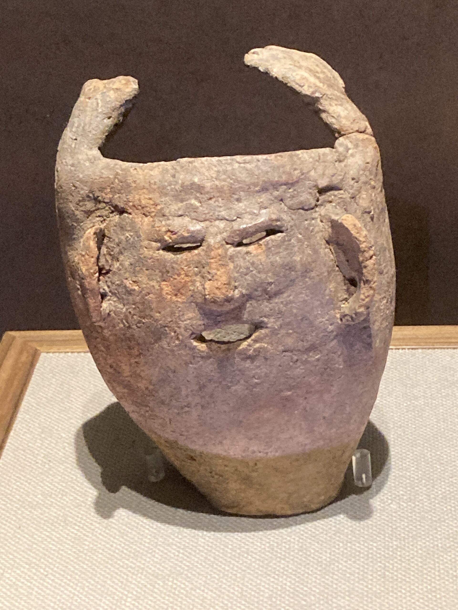 なんか面白い土器があった。万歳しているように見えるので、文字通り「挙手人面土器」というものらしい。