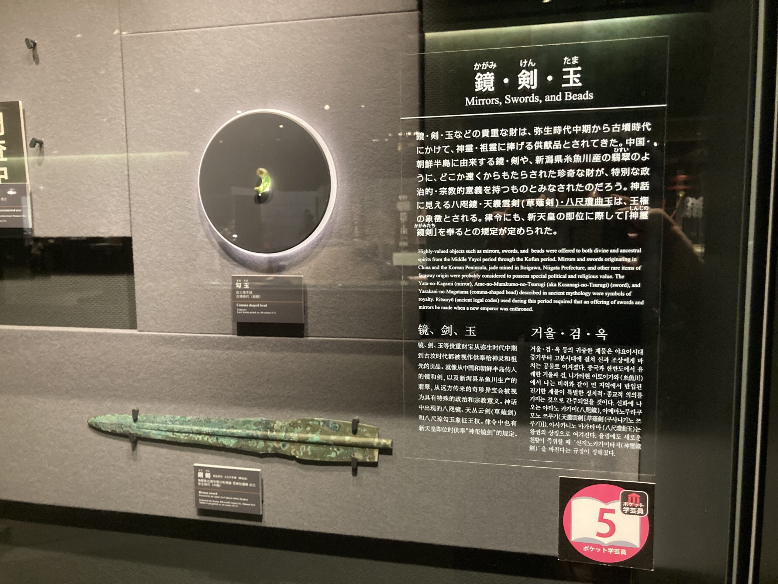 勾玉や銅矛もこの頃に盛んに使われた祭祀具。なんかこの写真だと、勾玉が輝いて見える。