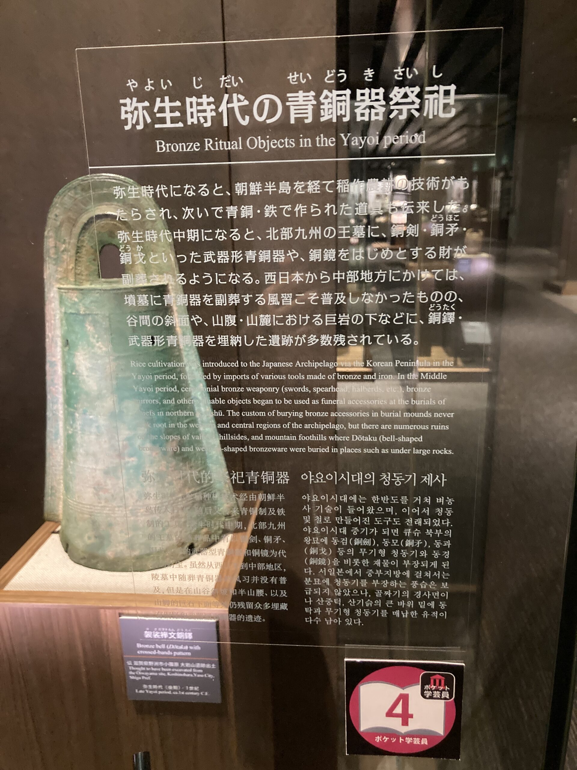 縄文時代に別れを告げて、やってきたのが弥生時代のコーナー。こうやってライトの下で飾られると堂々としていて、なんかかっこいい。