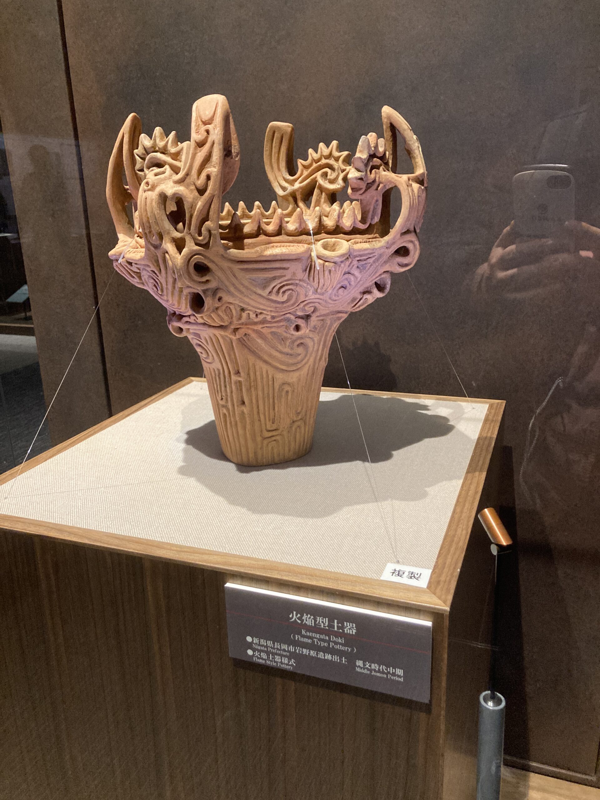 博物館で展示物を上手く見せるのは、難しそうだなって思った。因みに、写真は火焔土器。縄文土器といえば、やっぱりコレよね。