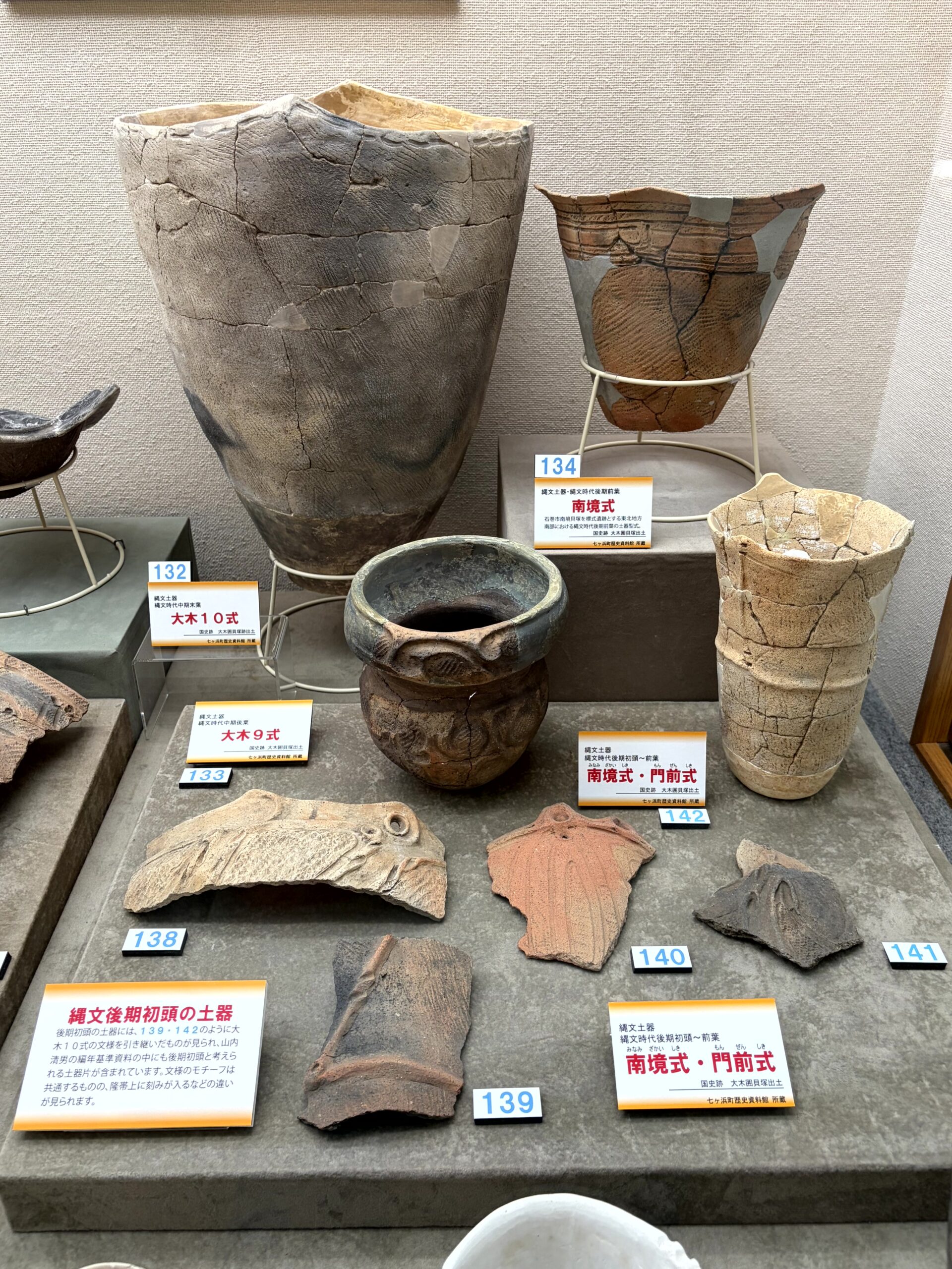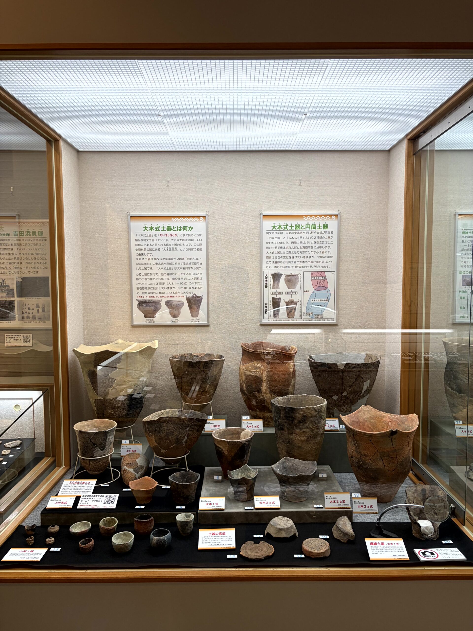 個人的に見どころだなと思ったのは、大木式土器が時期順(型式順)に展示してあって、東北を代表する土器について深く学べる点かな?あと、隣接する大木囲貝塚が桜の名所らしく、桜の季節に行くとめちゃくちゃキレイなところ。