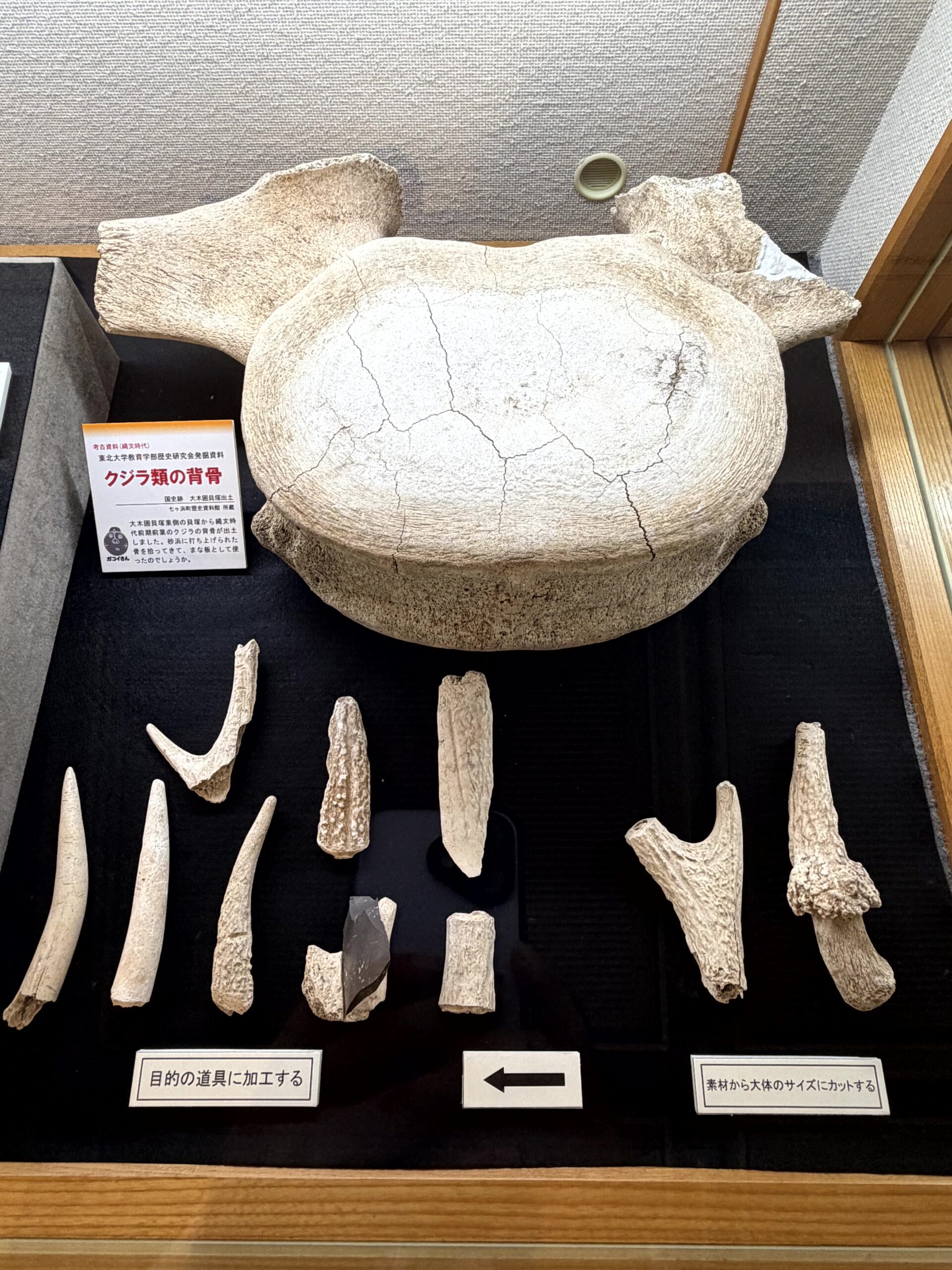 用途は分かっていないけど、クジラ類の背骨。インパクトがあったので写真に撮っておいた。