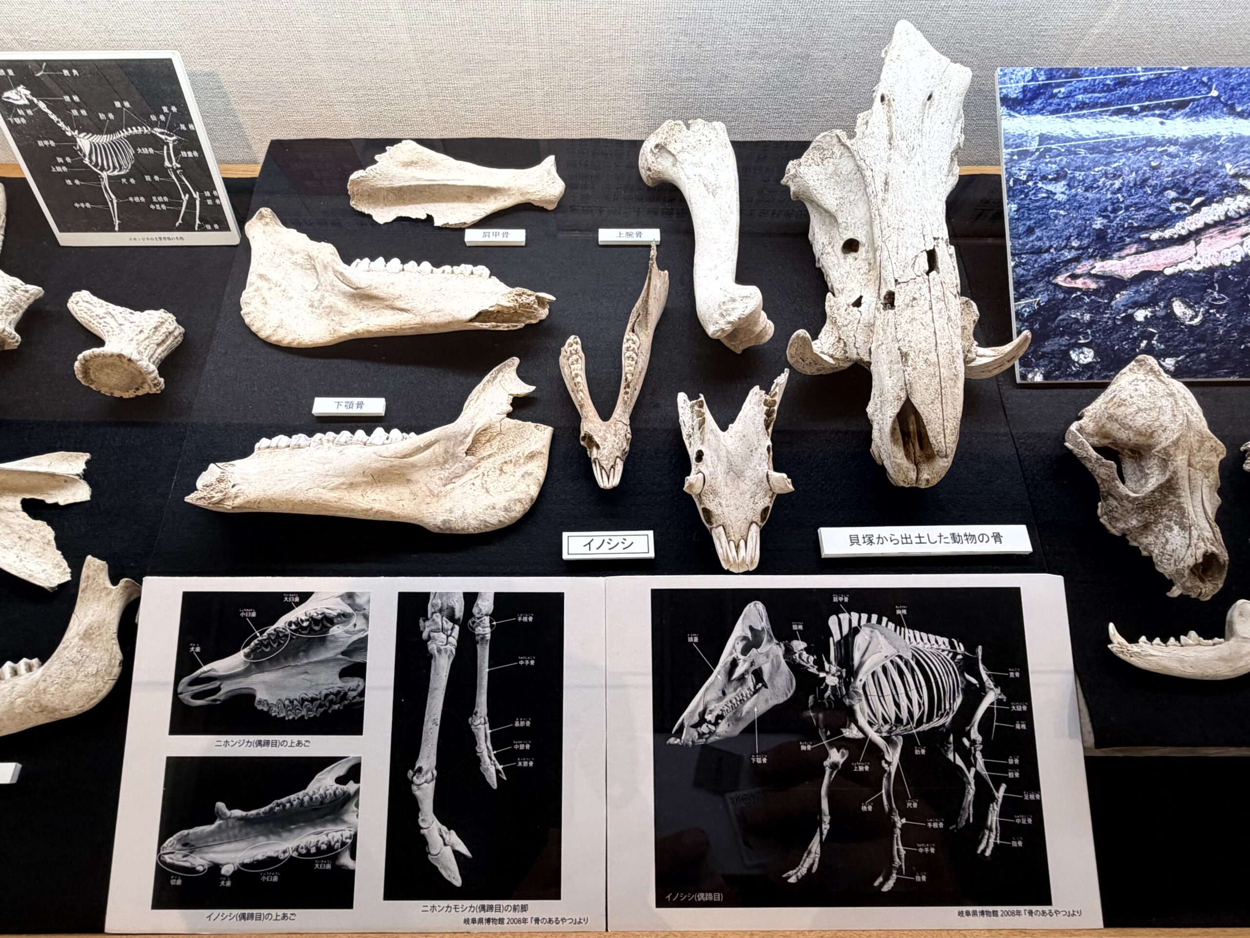 貝塚から出土した動物の骨。動物の骨コレクターの人とかいるけど、最近ちょっと興味があったりする。作るのとか大変そうだけどね。