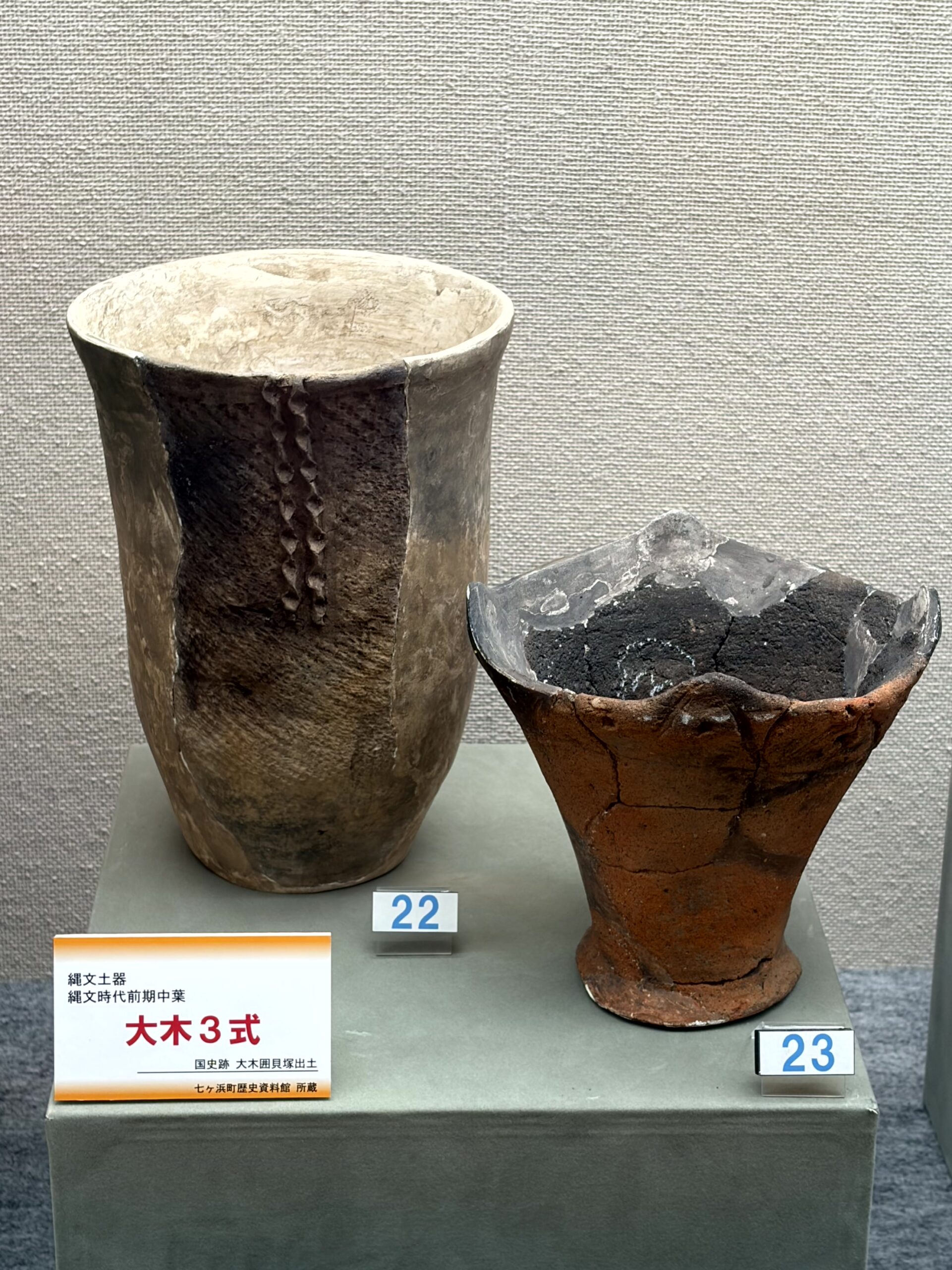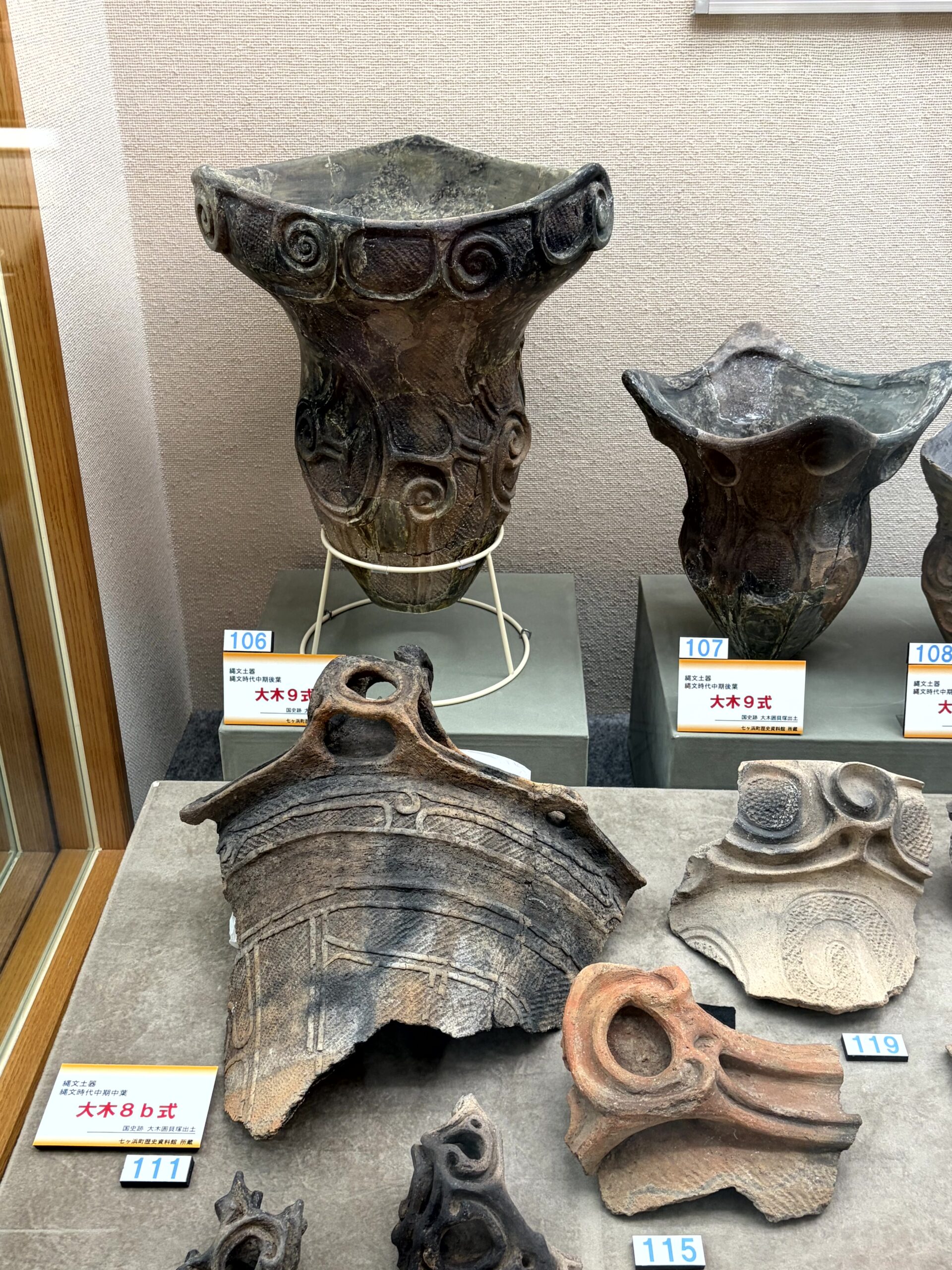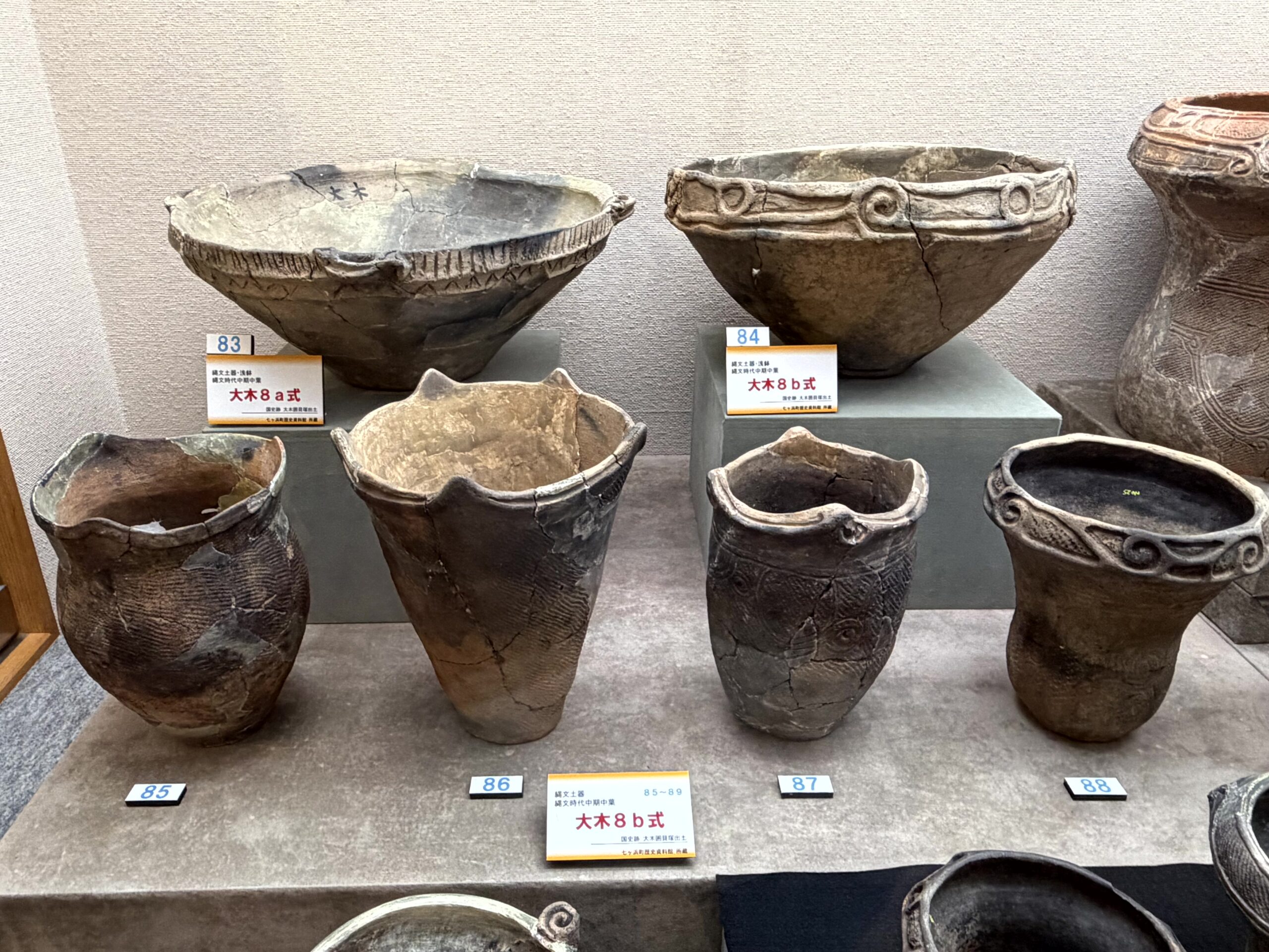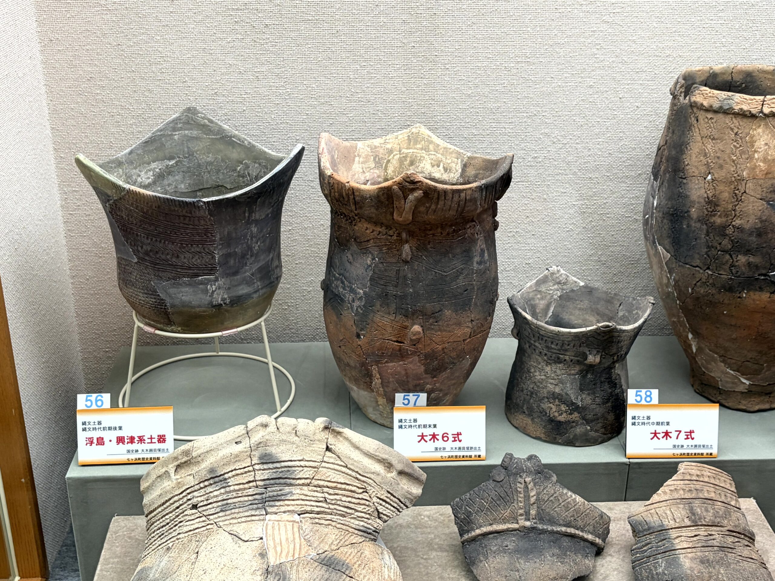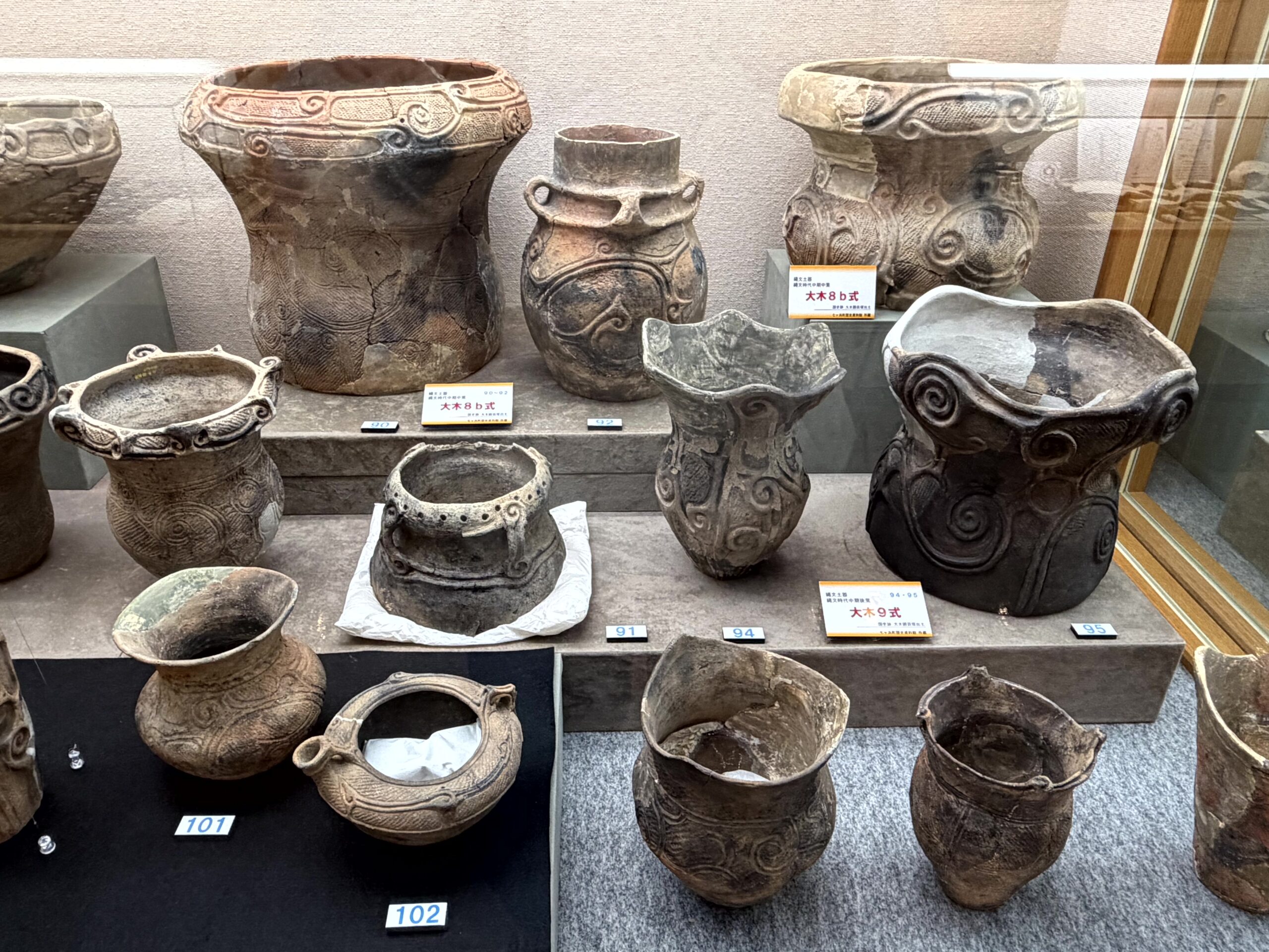 1種類の縄文土器が型式、しかも1~10式まで全部展示してある施設はあまりないから、大木式土器を学ぶ上ではとても貴重な展示だと思う。でも、できれば、型式毎にケースを分けてくれていれば、もっと良かったかな。