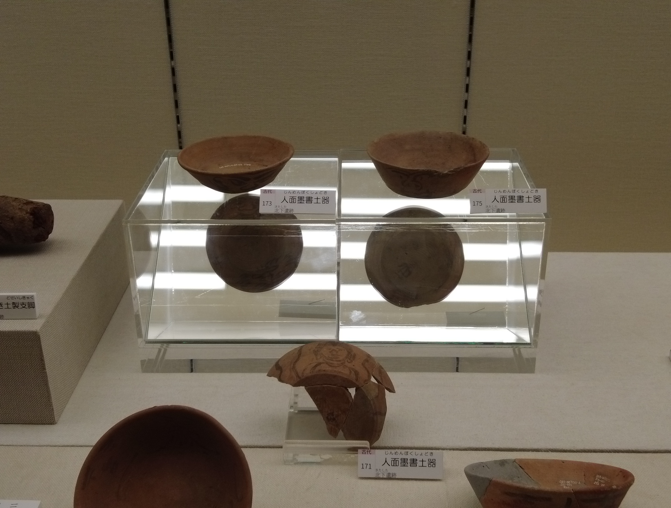 それにしても、人面墨書土器って、上手い人が描いた土器もあれば、落書きみたいの土器もあって、描く人の技量によって差があるのが面白い。絵が下手な人は、現代でいうところの「画伯」的な感じでいじられたりとかもしたのだろうか?そもそも墨書ができる人は偉い人だろうから、下手な絵でも、おべっかを使われたりとかしたのだろうか?現代を生きるの画伯としては興味のあるところである。