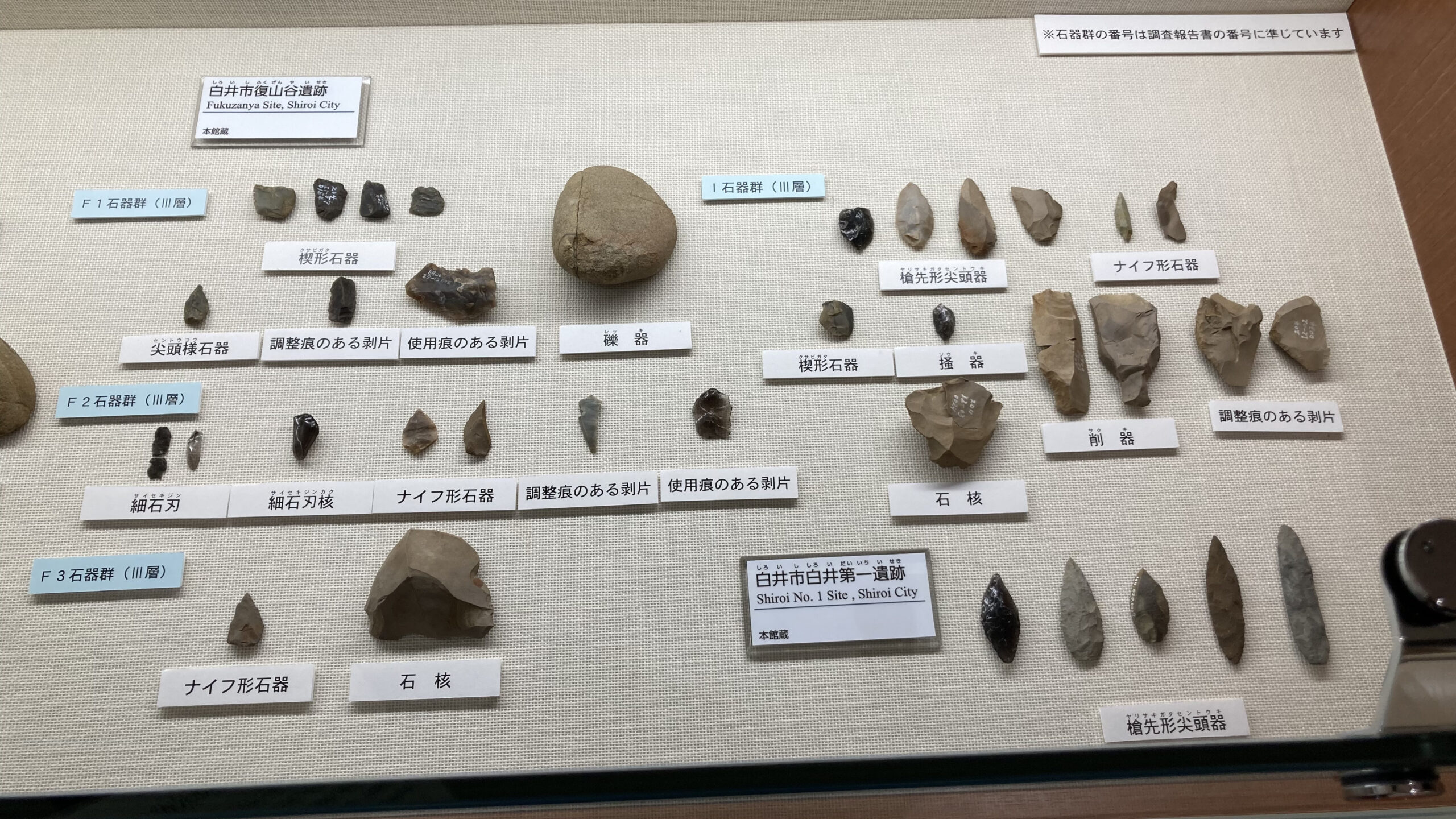 最後はお待ちかねの縄文時代。このサイトでもお馴染みの「環状石斧」。壊れた状態での展示だから、我々が発見した完形品はマジで大発見よね。